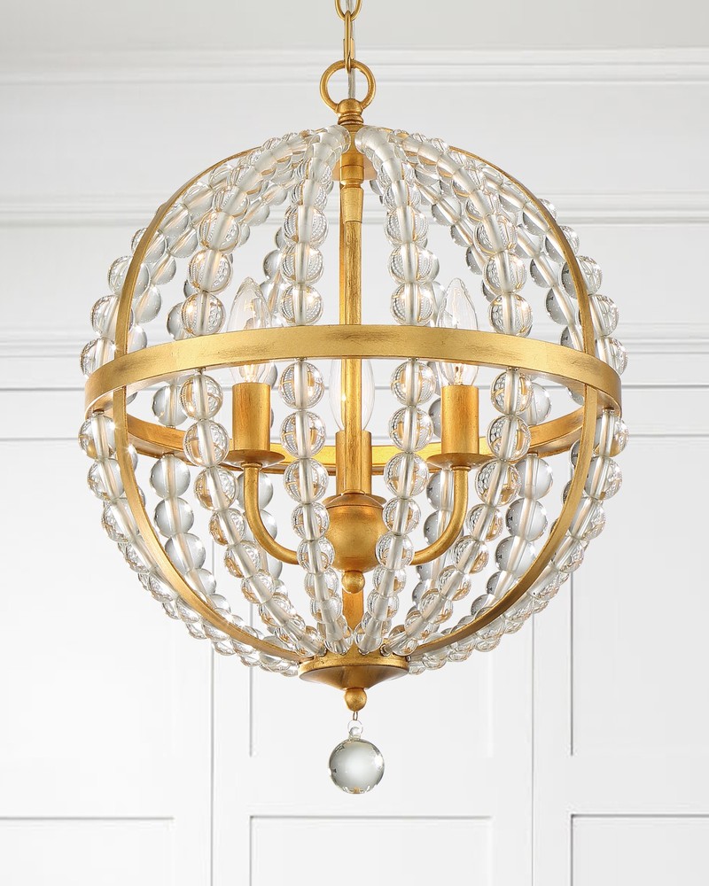 Turning today's most popular home decor trends into fashionable lighting, Crystorama's Roxy Collection features an innovative fusion of solid chunky glass beads placed into a sophisticated, hand painted orb. Both modern and clean, this fashionable fixture is a beauty from all angles. Truly eye-catching and versatile, its simple elegance allows it to complement many design styles from contemporary to transitional.