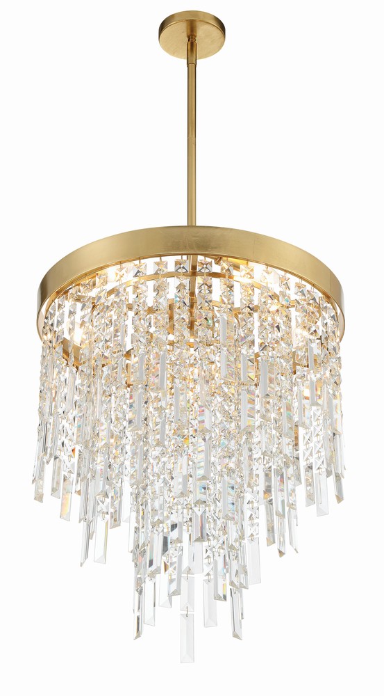 The thick simple metal frame of the Winfield is dramatically dressed with a cascade of crystals.