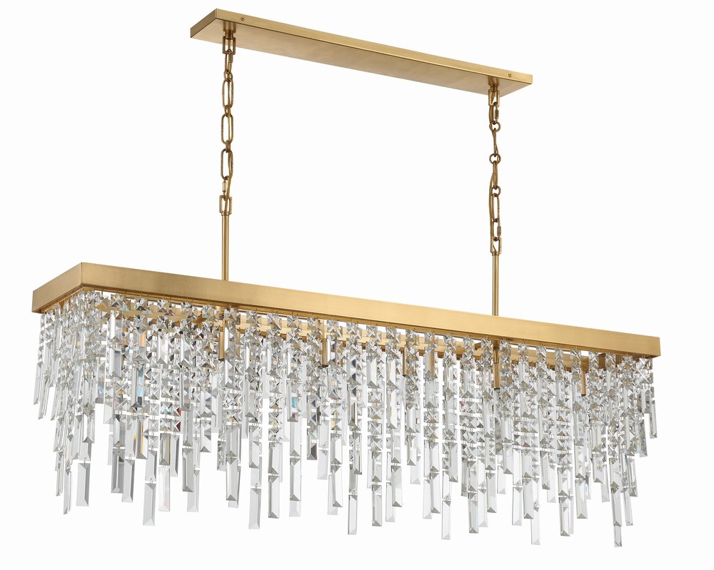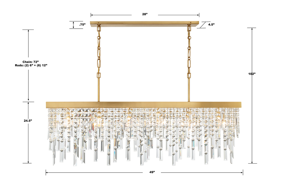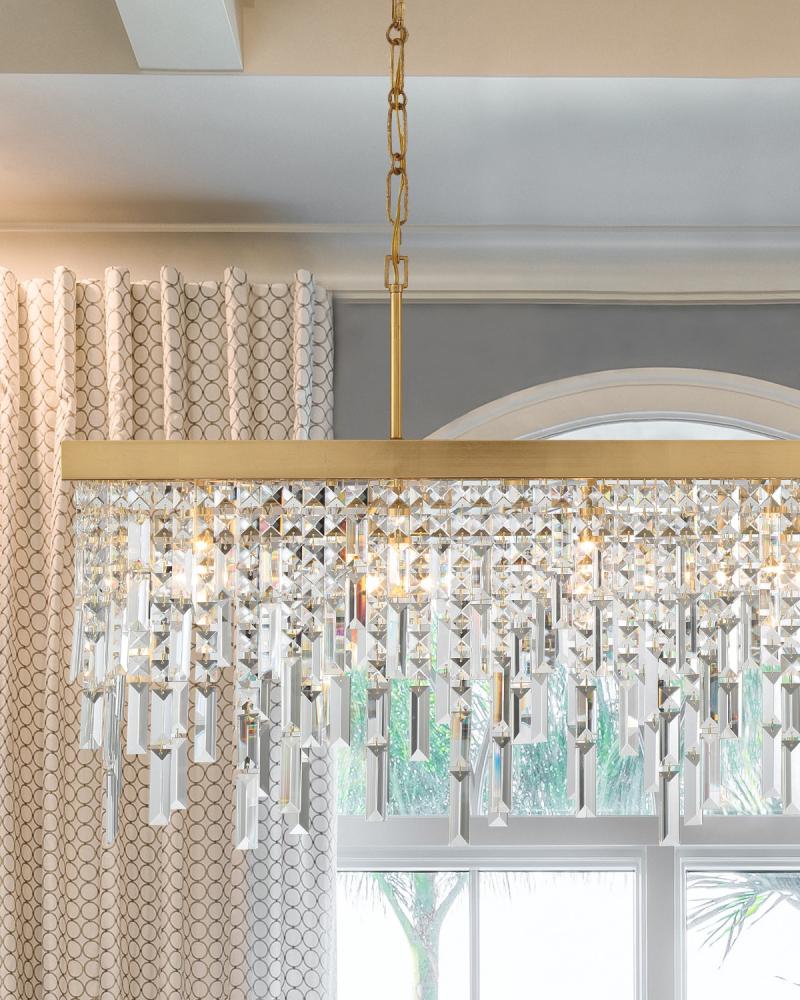 The Winfield collection's artful elegance and inspiring beauty make a sophisticated statement to an interior. This exquisite collection showcases square and rectangular multi-faceted cut crystal strands gracefully hanging from its metal frame. These mesmerizing crystals sparkle and reflect light, creating a dazzling display that captures attention and adds a touch of opulence to any space. Whether illuminated or not, its eye-catching presence becomes a focal point in any room.