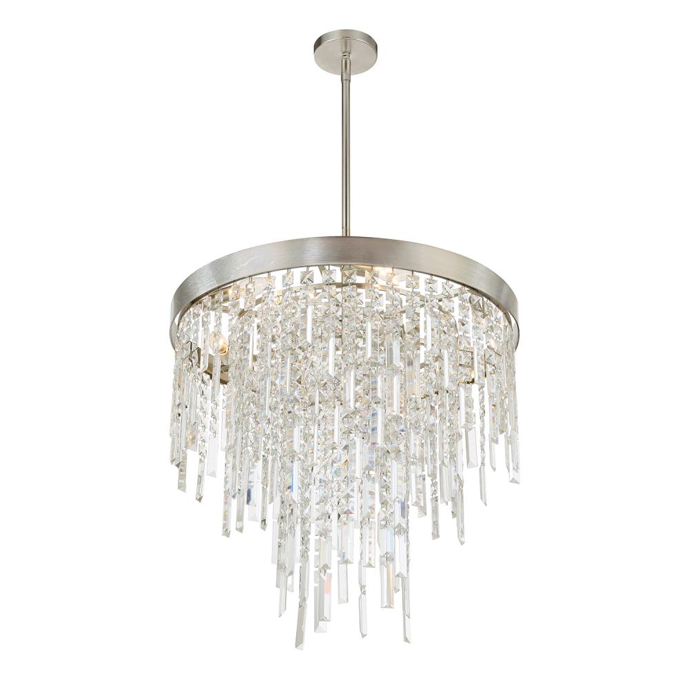 The thick simple metal frame of the Winfield is dramatically dressed with a cascade of crystals.