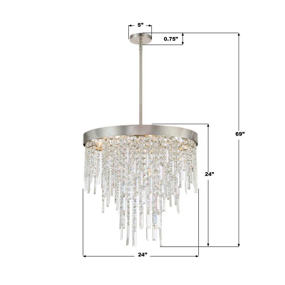 The Winfield collection's artful elegance and inspiring beauty make a sophisticated statement to an interior. This exquisite collection showcases square and rectangular multi-faceted cut crystal strands gracefully hanging from its metal frame. These mesmerizing crystals sparkle and reflect light, creating a dazzling display that captures attention and adds a touch of opulence to any space. Whether illuminated or not, its eye-catching presence becomes a focal point in any room.