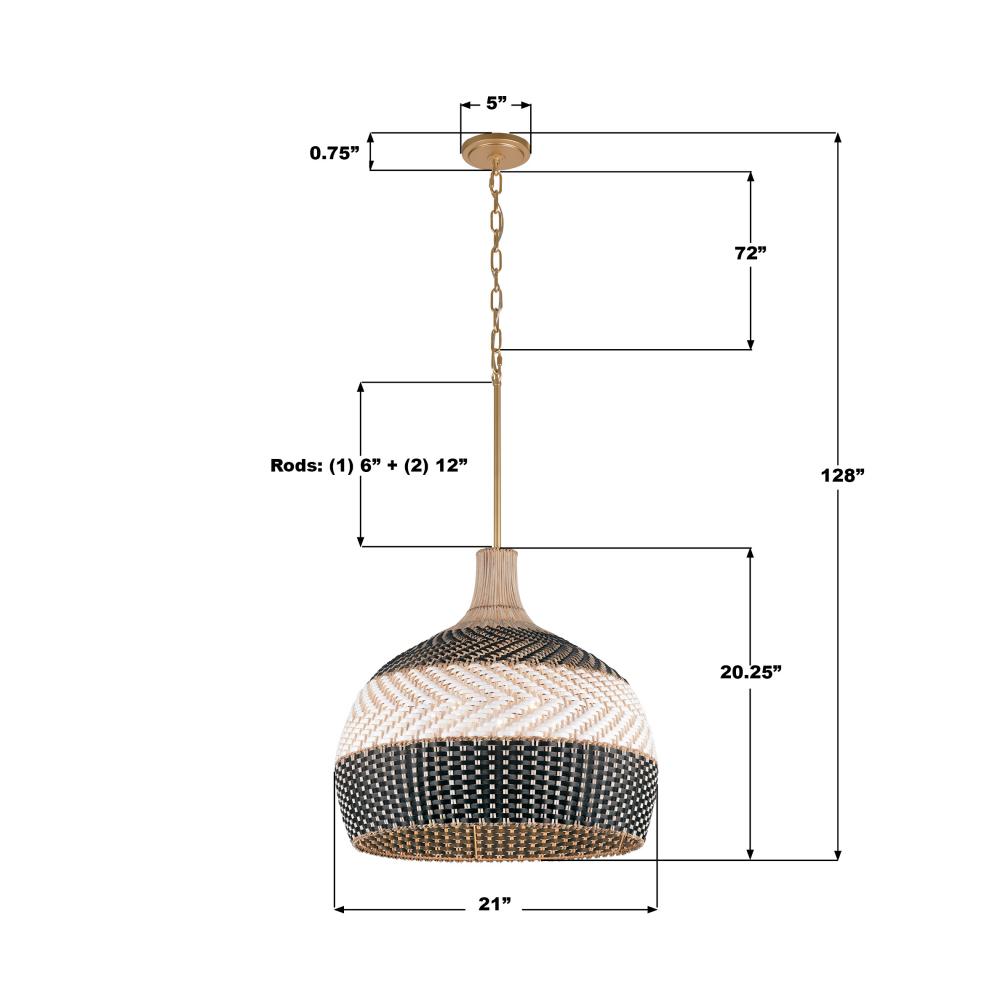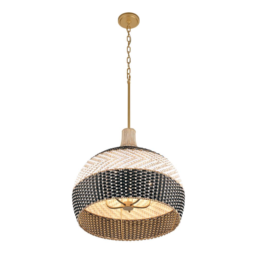 The Zanzibar Collection is an embodiment of laid-back luxe and thoughtful simplicity. By marrying the natural textures of natural rattan with white and/or black lanyard, the fixture introduces a striking color palette with a soft gold finish that instantly brings comfort and style to a living space Handcrafted with precision, the intricate weave introduces texture and depth to your décor. Whether suspended over a breakfast nook or in pairs above a kitchen island, the Zanzibar exudes an earthy, elegant charm that brings an artisanal touch to your decor.