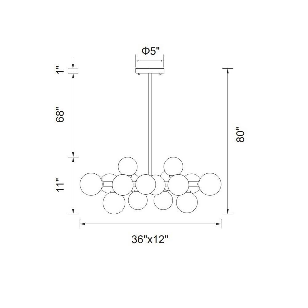 The Arya 16 Light Chandelier in Satin Gold will add a sophisticated sculptural presence to any indoor space. Sixteen frosted glass globes with LED light are affixed to a satin gold horizontal metal rod that suspends from an adjustable downrod. This linear