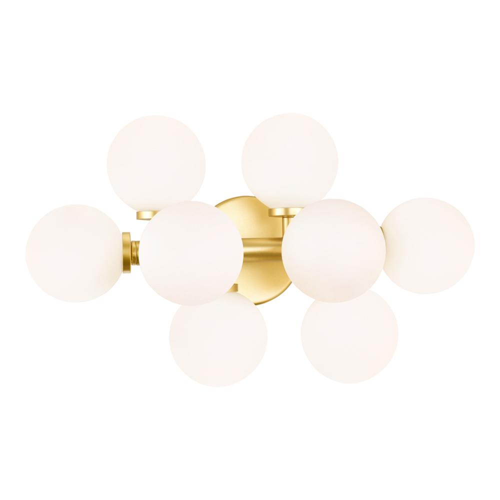 Dress up a dark hallway, your spacious bathroom, or bedroom with a pair of this Arya 8 Light Wall Sconce. Finished in satin gold and paired with frosted white LED spheres, this modern wall lamp will instantly give any space an on-trend look. This hardwired