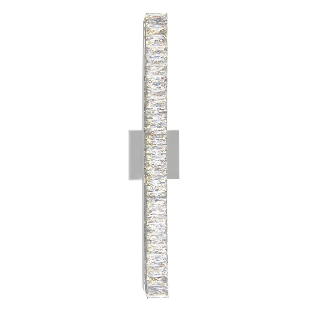 The Milan 24 inch LED Wall Sconce is sure to wash your bathroom with a glistening glow. This light source features a chrome hardware and a slender bar of crystals that beautifully reflect and refract light. This narrow light source will also suit long, nar