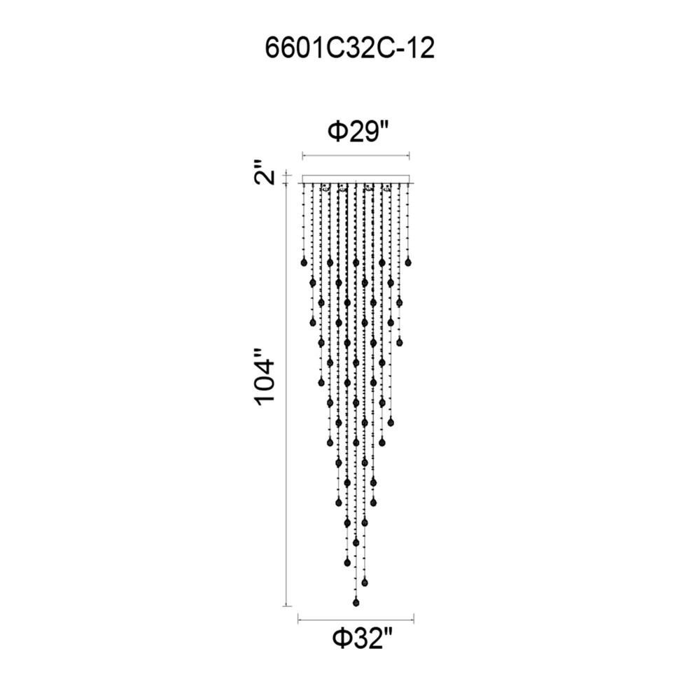 The Rain Drop 12 Light Flush Mount Chandelier is ready to deliver a big dose of glam to your space. Designed with a 32 inch round canopy in chrome holding strands of crystals measuring 106 inches long, this breathtaking light source won't disappoint in