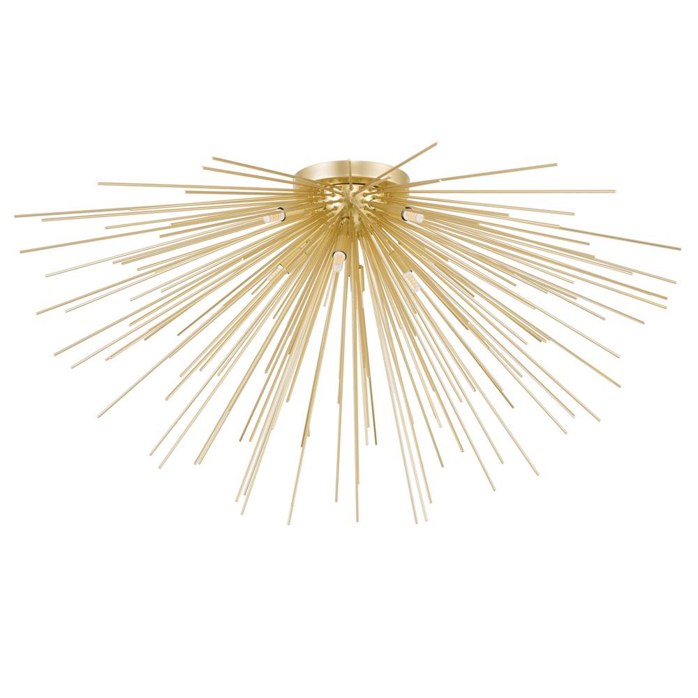 Like a ray of sunshine, the Savannah 8 Light Flush Mount Light in Gold Leaf Finish will lend your home a golden glow. This breathtaking luminaire designed with a starburst or Sputnik style gleams ultramodern elegance in every direction. Eight unshaded ligh