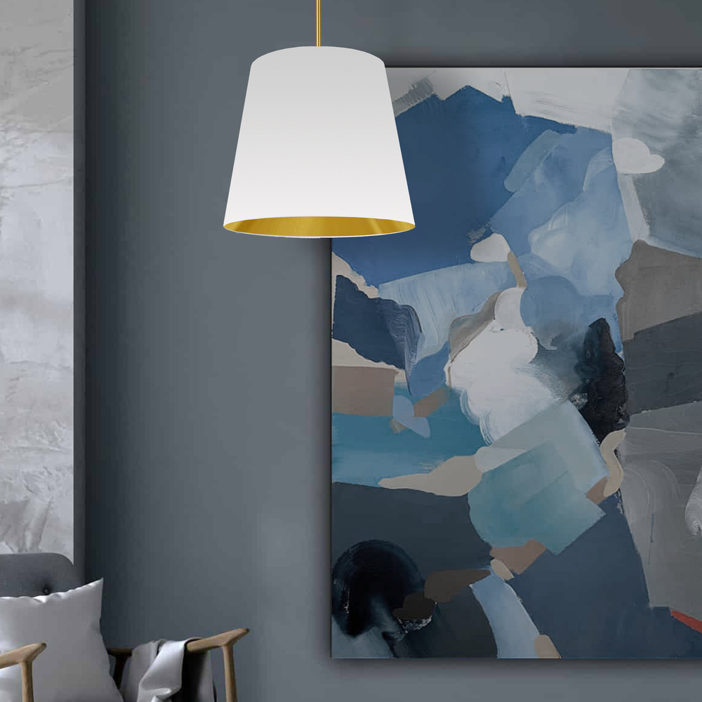 Oversized Drum lighting offers a look that can't be ignored, but is simple enough to blend in with strong modern and contemporary décor schemes. Clean lines and an elegant shape give it a luxurious appeal. A simple metal drop and/or frame is dominated by a large fabric drum shade. Options include both monochromatic designs, and contrasting inner/outer shades for a more dramatic effect. With so many options and configurations from floor to pendant lighting, Oversized Drum lighting is the ideal way to unify the look of a modern home.