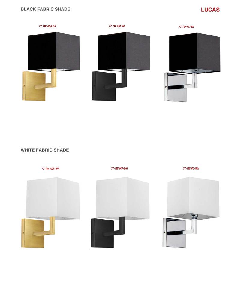 With its clean lines and geometric appeal, the Lucas family of lighting adds a distinctive modern aesthetic to your home décor. The look is sleek, with a modest profile and wall-mounted construction that allows it to blend easily with your stylish modern or minimalist furnishings. The metal frame is prominent in the design, with a square base, and arm angled upwards. The square shade echoes the geometric design. It's an eye-catching look that is available in a selection of color combinations from stylishly subtle to dramatically contrasting to suit your needs in a living room, foyer or bedroom.