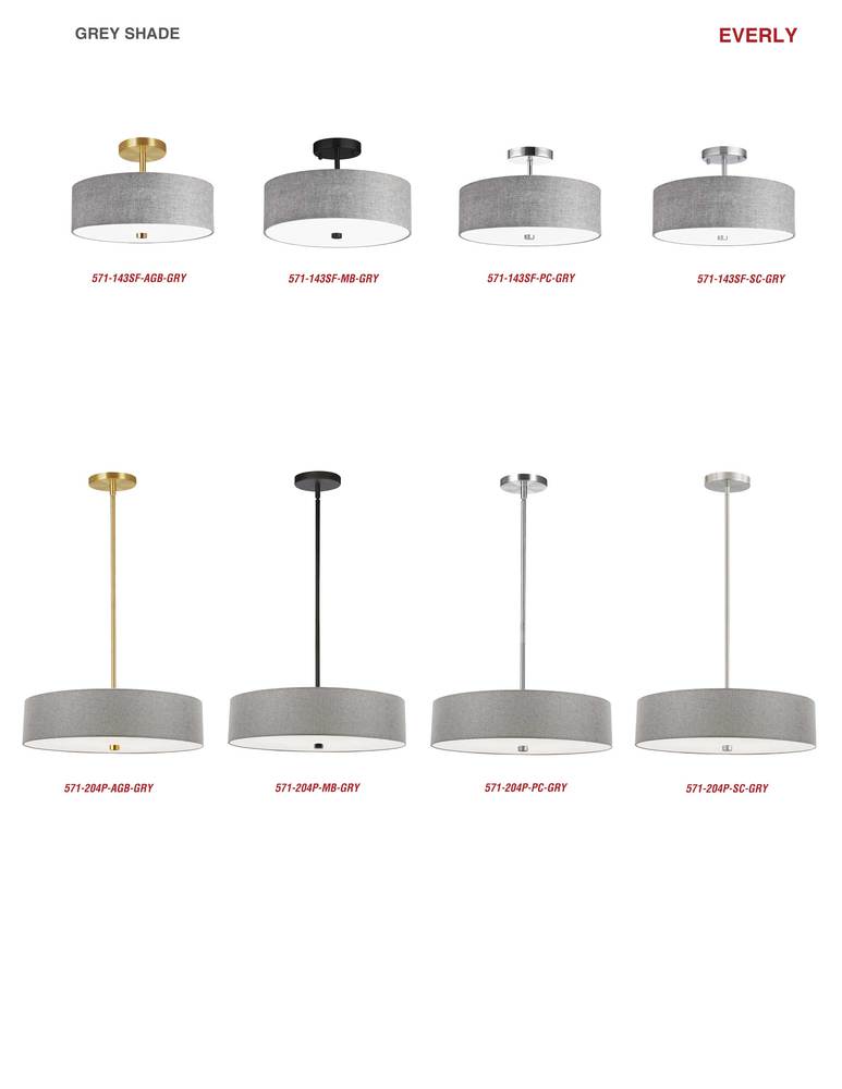 Mid-century, modern or contemporary, the Everly family of lighting will add a fashionable presence to your home décor. The pendant design comes in a one or two tier construction. The metal frame drops to a relatively narrow drum shade, with a contrasting inner shade. From the metal frame to inner and outer shades, color options range from monochromatic to dramatic contrast. With its elegant proportions, the Everly family of lighting brings an element of luxury to foyers, living rooms or kitchens.