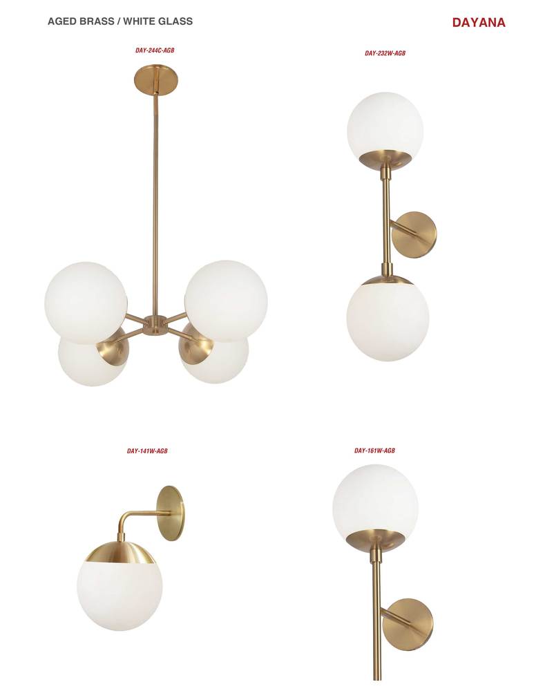 Beautifully simple in its concept, the Dayana family of lighting showcases the appeal of geometry and the sensuality of the curve. The metal base in matte black, polished chrome or aged brass finish comes in a variety of linear configurations, some straight and others curved. Lighting emanates from round glass housing in a soft opal finish. The Dayana line is perfect for virtually any space in a modern home, big or small, from small corners to living and bedrooms, or a stylish home office.