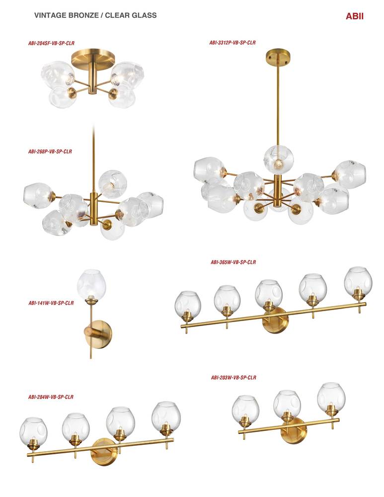 The eye-catching contrast of glass globes and sleek straight lines form the basis of the ABII family of lighting fixtures. It's a versatile and adaptable design with options ranging from a single sconce to a large pendant light in a look that can work with virtually any room or design scheme. The metal base and arms create a pattern to showcase the reflective effects of the glass globes. Colorway options include complementary finishes from warm to stylishly dramatic. Halogen lights add a warm glow. From ultra-modern minimalism to mid-century and even more traditional décors, the ABII family of lighting’s transitional design is both luxurious and timeless in its appeal.