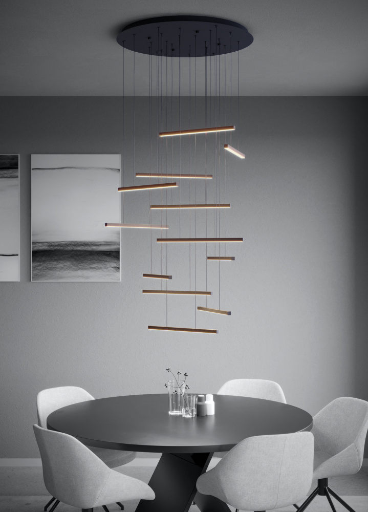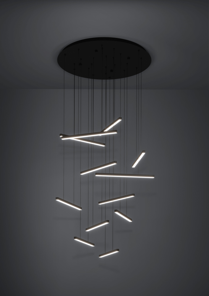 12 LT LED Cascade Pendant w/ Black Finish & Black Light bars
