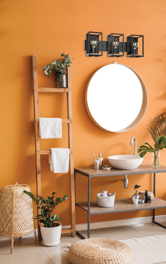 3 LT Bath/Vanity Light w/ Black Finish and Wood Accents
