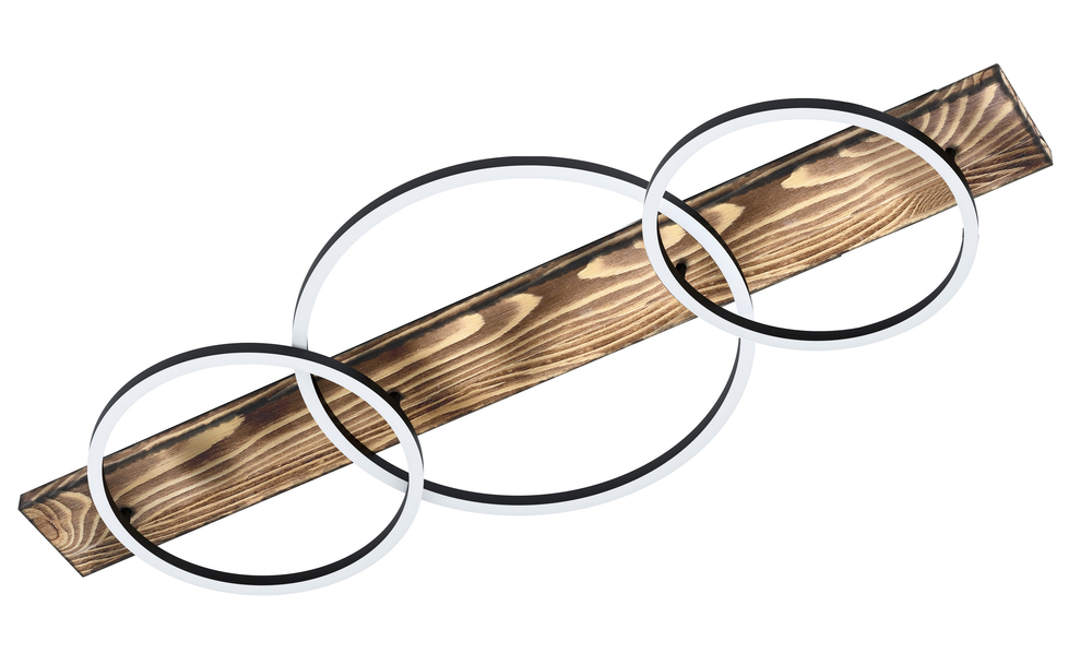 Boyal - 3Lt Integrated LED Pendant w/ a Brushed Pine Wood Finish and Structured Black Shades