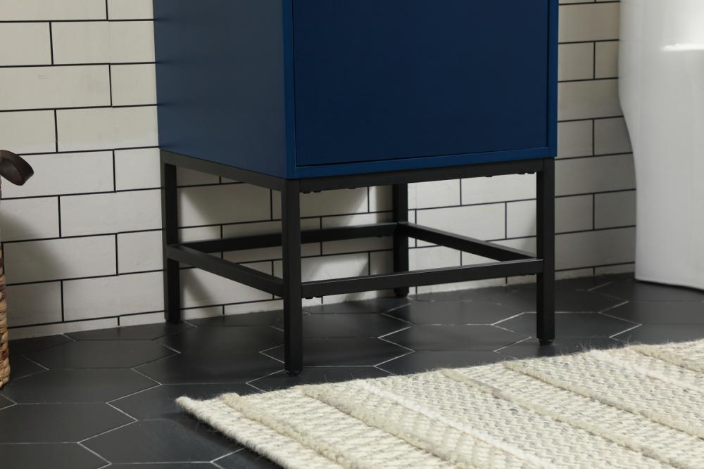 This vanity is a sleek-looking piece of bathroom furniture that is easy to incorporate into your design scheme. The cabinet features a smooth door panel with an oversized steel handle and soft close hinges provide ample room for accessories. Constructed of engineered wood, the powder-coated metal rod legs are an urban industrial look that we love. Minor assembly of the metal legs needed to get this vanity up and running.