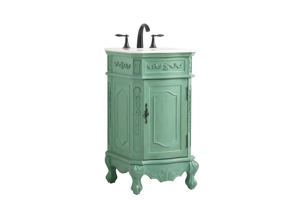 Comes with an off-white marble top with slight brown veining and bevel edge design, please note that due to the natural characteristics of the stone, the color and/or pattern of each countertop may vary from the pictures.
