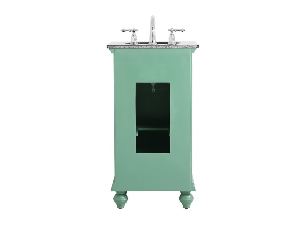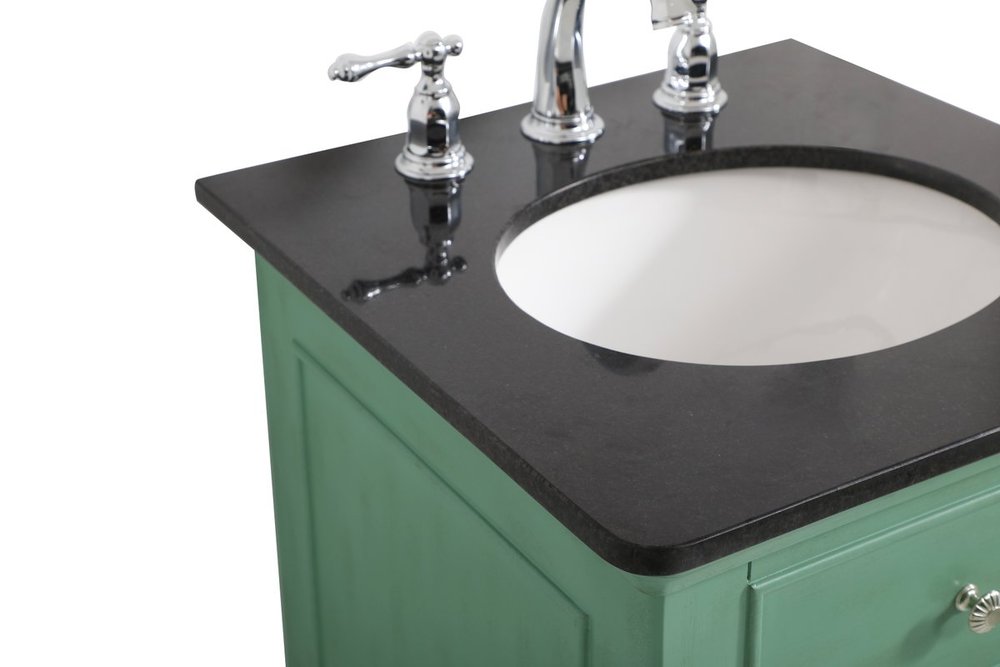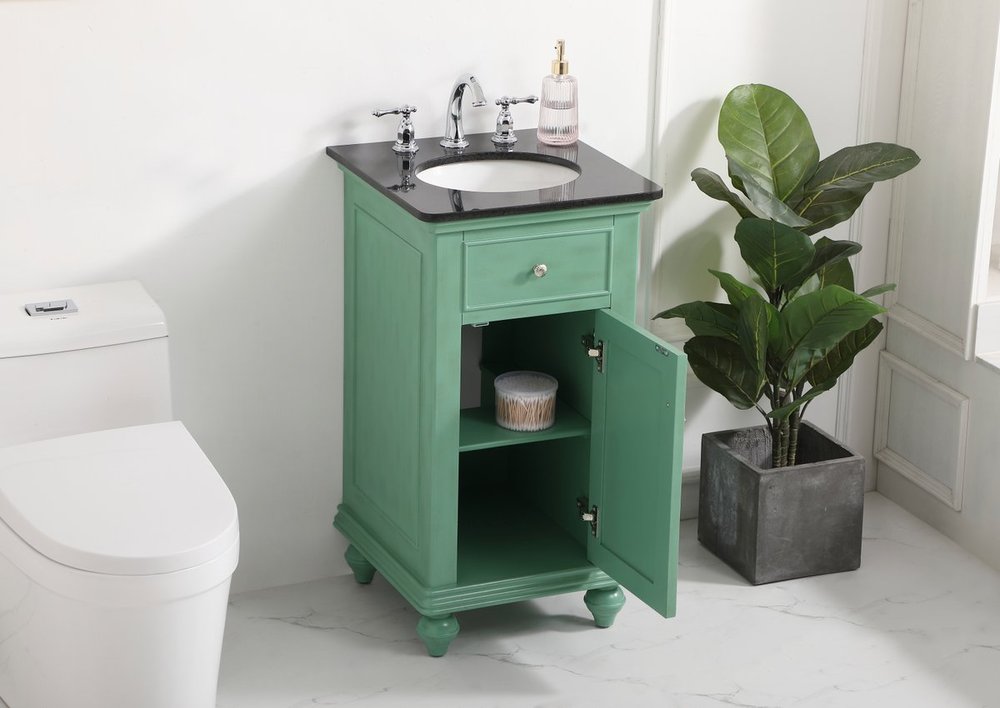 Create a refined and relaxing bath space with this contemporary design vanity, presenting its simplicity and clean straight lines in a minimalist appeal. This vanity, crafted of solid poplar wood and engineered wood panels, provides ample storage within its soft-close cabinet door, accentuated with metal hardware. Rounding out the design is a black granite top with a white porcelain under-mount oval sink. Convenient access for plumbing installation with cut out back panel. Hand painted finish with distressing application to provide an antique effect.