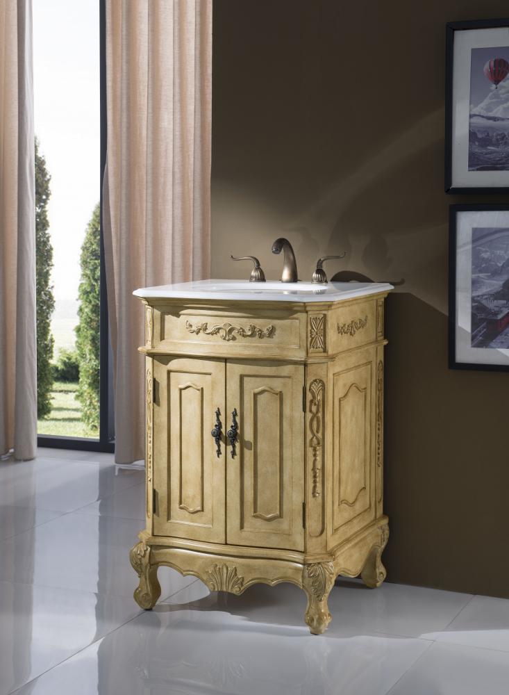 24 inch Single Bathroom vanity in Antique Beige with ivory white engineered marble