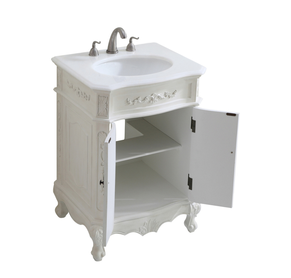 24 inch Single Bathroom vanity in Antique White with ivory white engineered marble