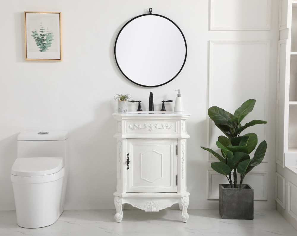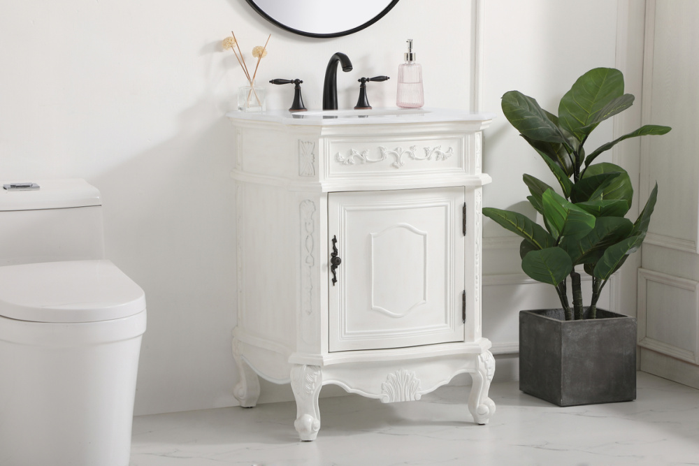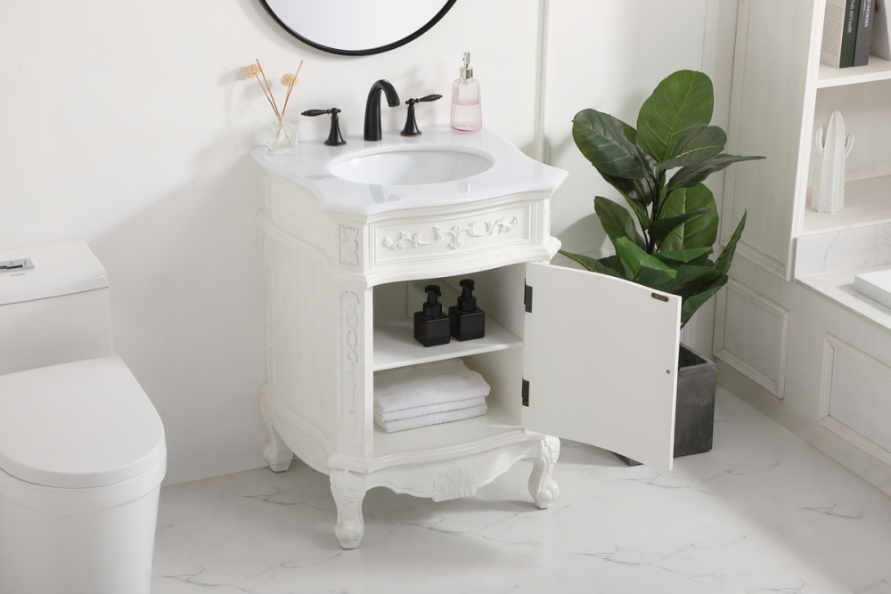 24 inch Single Bathroom vanity in antique white with ivory white engineered marble