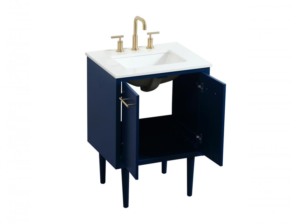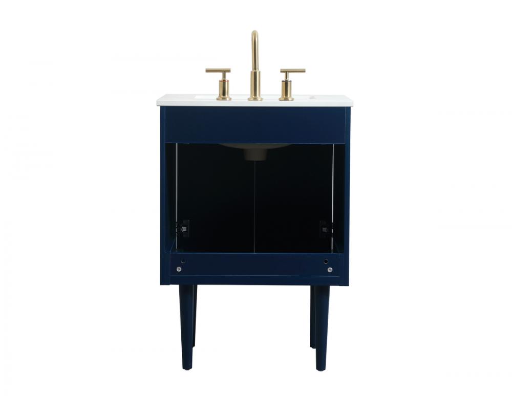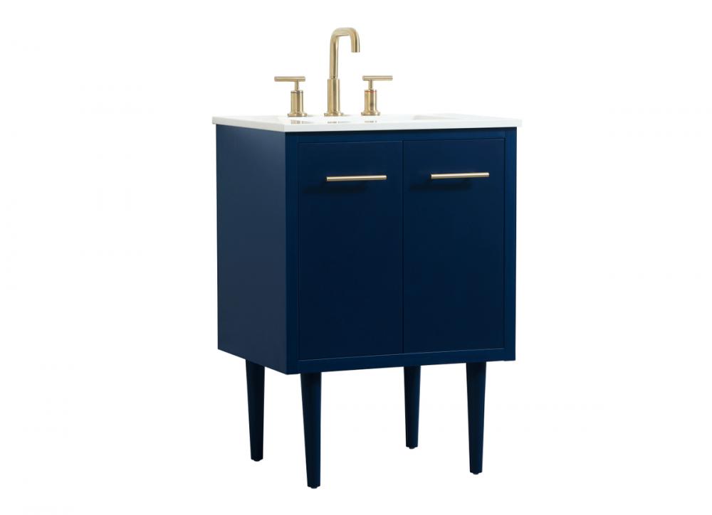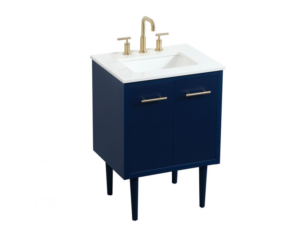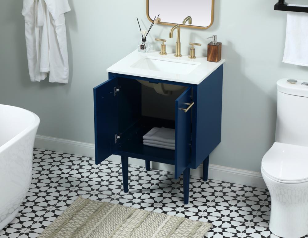 Delve into a world of minimalistic fashion and contemporary styling with this midcentury modern vanity. The clean lines anchors the design, while the straight tapered cylinder legs add subtle interest. Bar pull handle adorns the soft closing door hiding the base of the rectangular porcelain sink and letting you store your bathroom necessities and toiletries. The compact size makes it the perfect vanity for any bathroom or powder room, regardless of size. Whether you want to use this as a floating vanity or a freestanding vanity, the choice is yours. The durable ivory white engineered marble countertop complements the manufactured wood base vanity and is built to last.