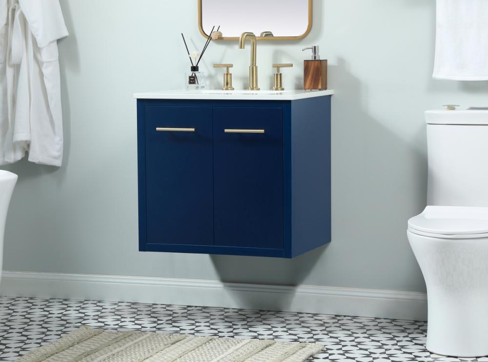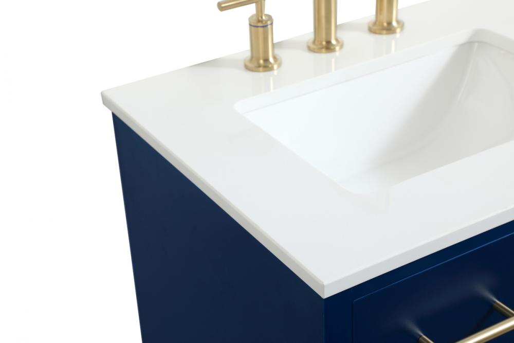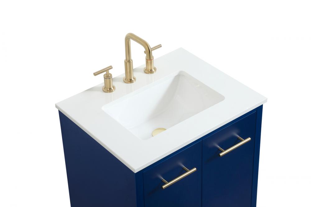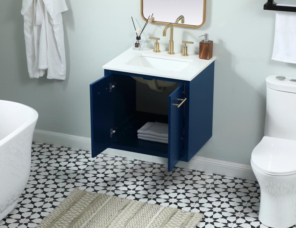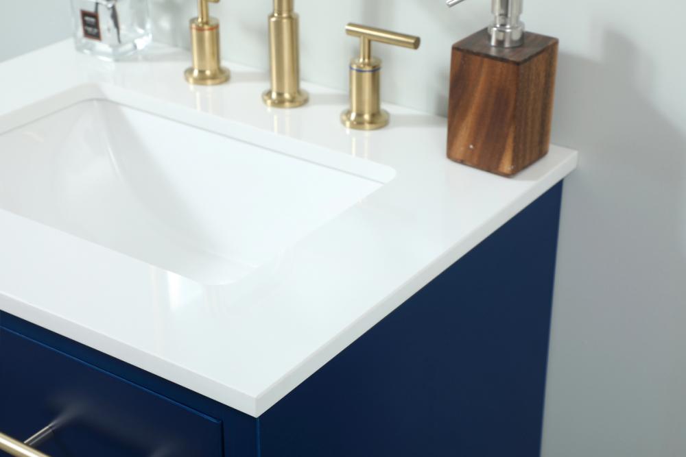 Delve into a world of minimalistic fashion and contemporary styling with this midcentury modern vanity. The clean lines anchors the design, while the straight tapered cylinder legs add subtle interest. Bar pull handle adorns the soft closing door hiding the base of the rectangular porcelain sink and letting you store your bathroom necessities and toiletries. The compact size makes it the perfect vanity for any bathroom or powder room, regardless of size. Whether you want to use this as a floating vanity or a freestanding vanity, the choice is yours. The durable ivory white engineered marble countertop complements the manufactured wood base vanity and is built to last.
