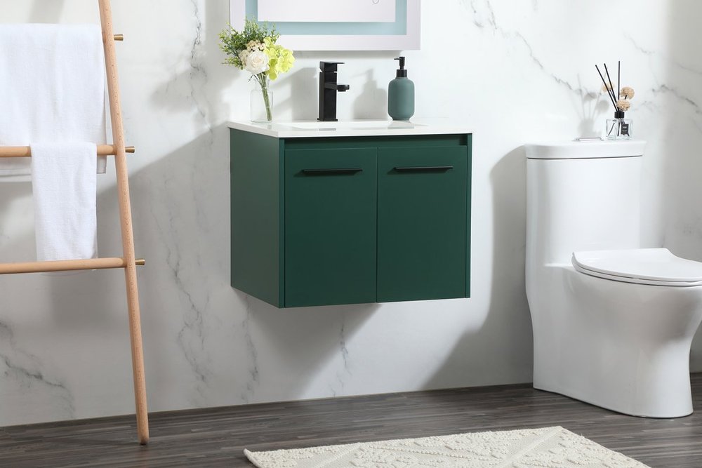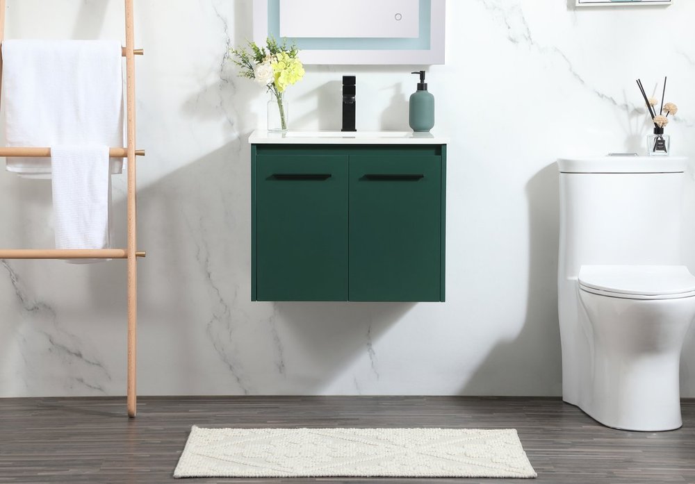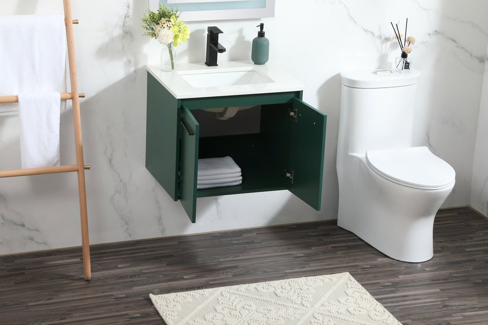 Save space and make your bathroom appear bigger with this floating vanity that comes in several finishes. Its minimal design will have you in awe, while its clean lines will leave your room feeling fresh and uncluttered. The Single cabinet opens with soft closing doors that allows for storage to place extra towels or various other essentials. Its low maintenance and durable engineered marble top will surely last through many washes.