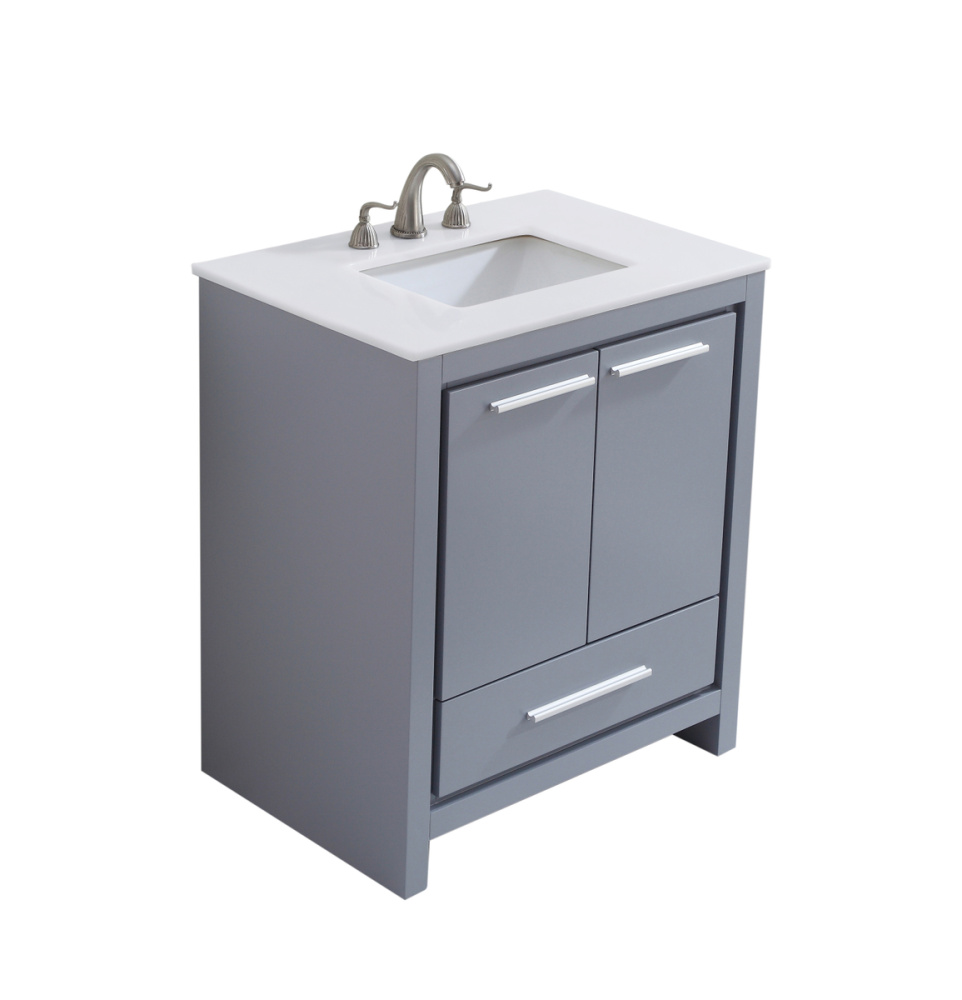 30 inch Single Bathroom vanity in Grey with ivory white engineered marble