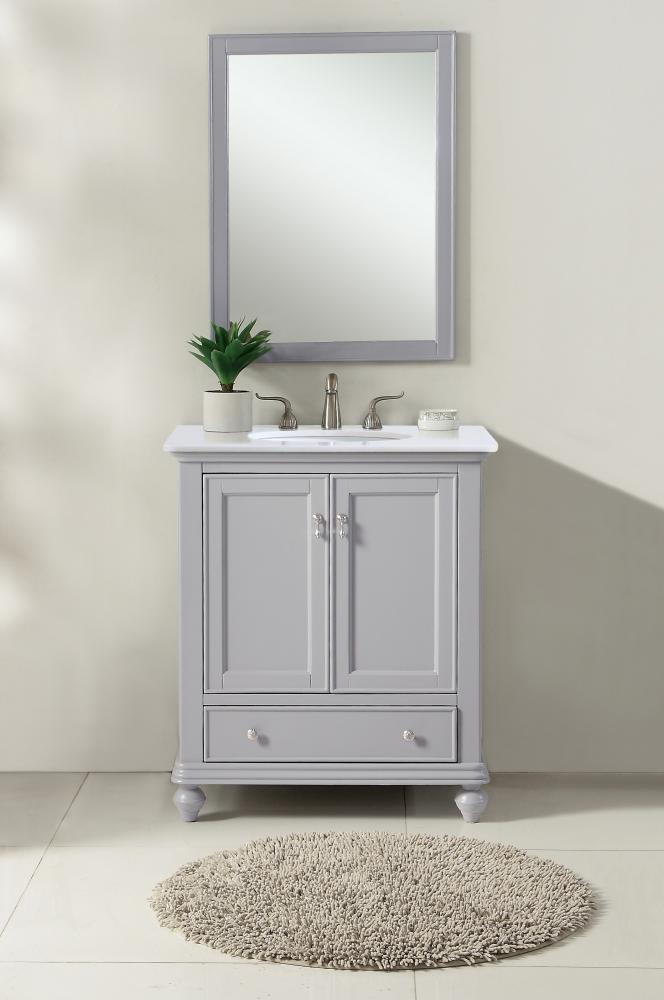 30 inch Single Bathroom vanity in Light Grey with ivory white engineered marble