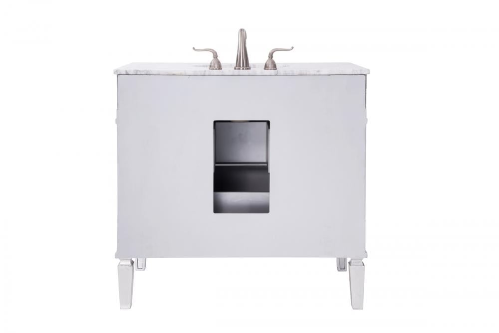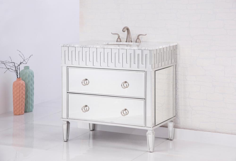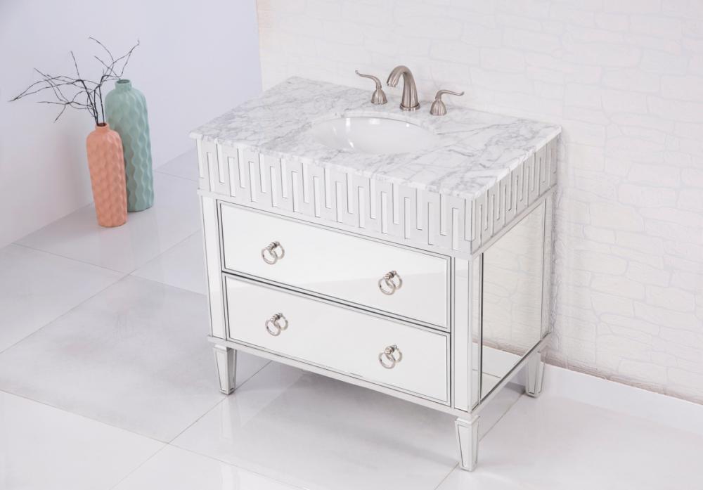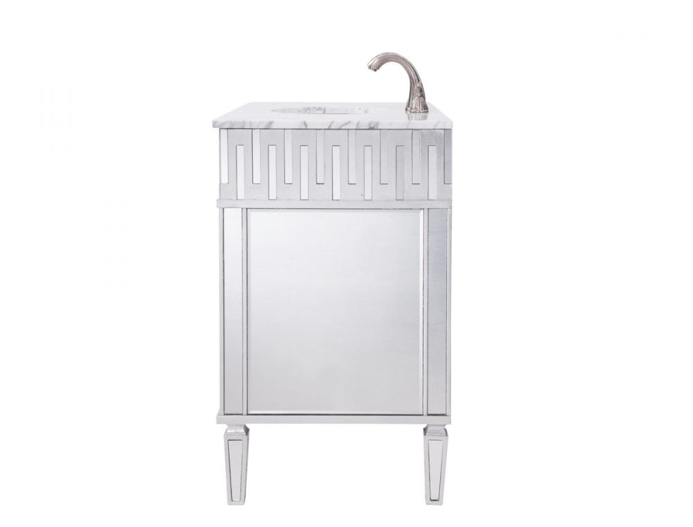 Our unique “nouveau” vanity brings together the best of contemporary styling and functionality to your home or office bathroom, design with authentic white marble, top-grade mirrors, hand-rubbed silver finish, brushed steel knobs