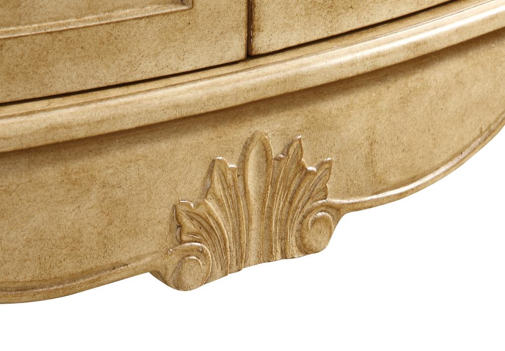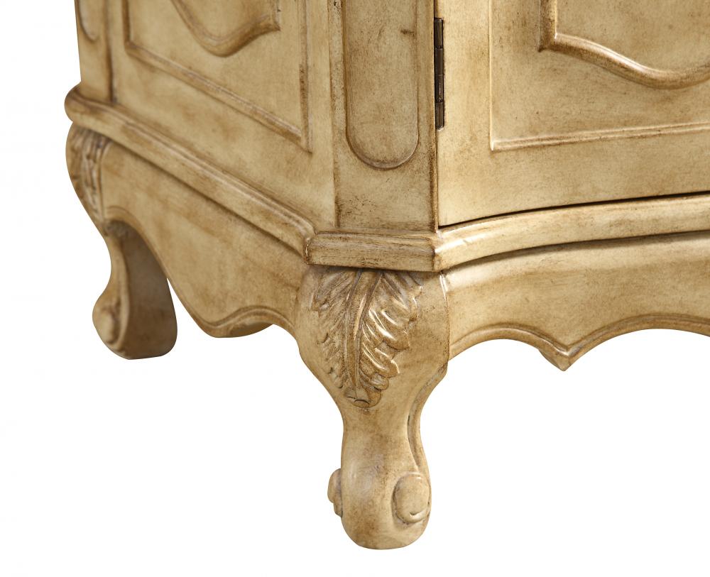 This superb balance of timeless tradition and opulent beauty in a engineered marble-topped vanity will certainly enhance the aesthetics of any home or office bathroom! Featuring an ivory white durable engineered marble countertop complimenting the hand painted cabinet with a delicate carved floral design, stands on stylishly carved solid wood French scroll feet. Don't let the design fool you, the engineered marble countertop and porcelain undermount sink allows for space to get ready, while the antique bronze hardware allows you to discover storage spaces with ease. You and your guests will marvel at this vanity that will both store away your bathroom essentials and enhance the aesthetics of your room.