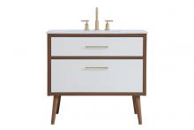 36 inch Single bathroom vanity in teak with backsplash