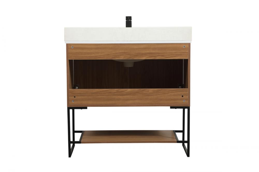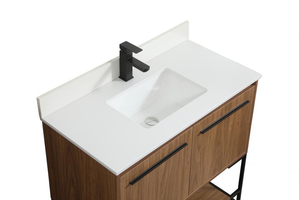 36 inch Single bathroom vanity in walnut brown with backsplash