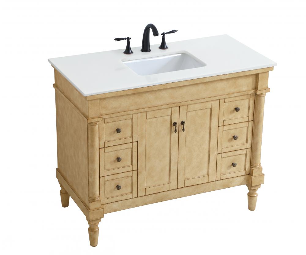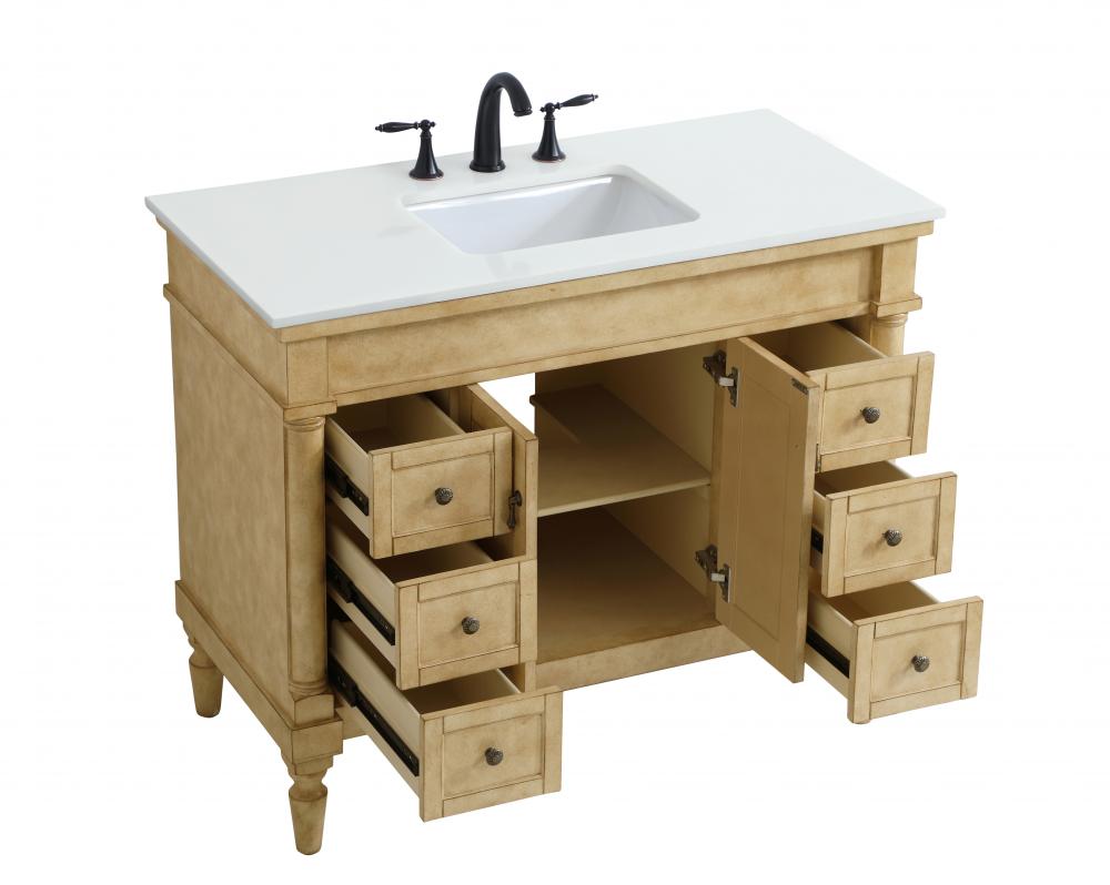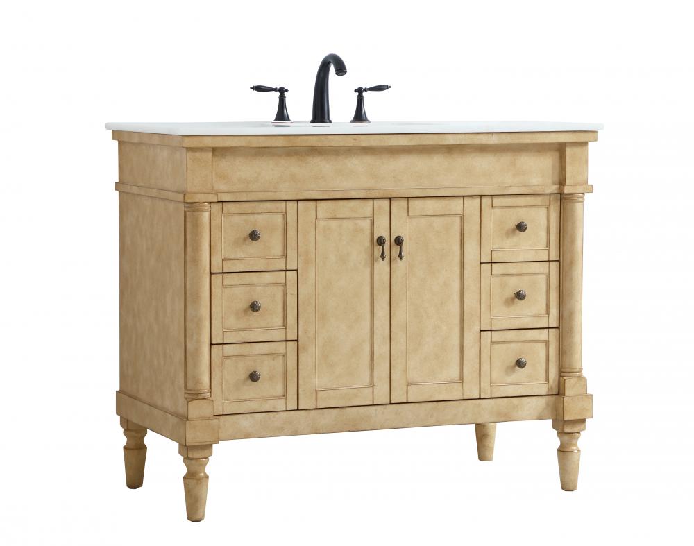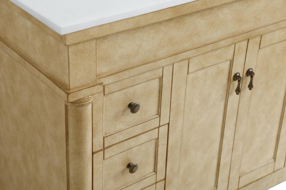 42 inch Single Bathroom vanity in Antique Beige with ivory white engineered marble
