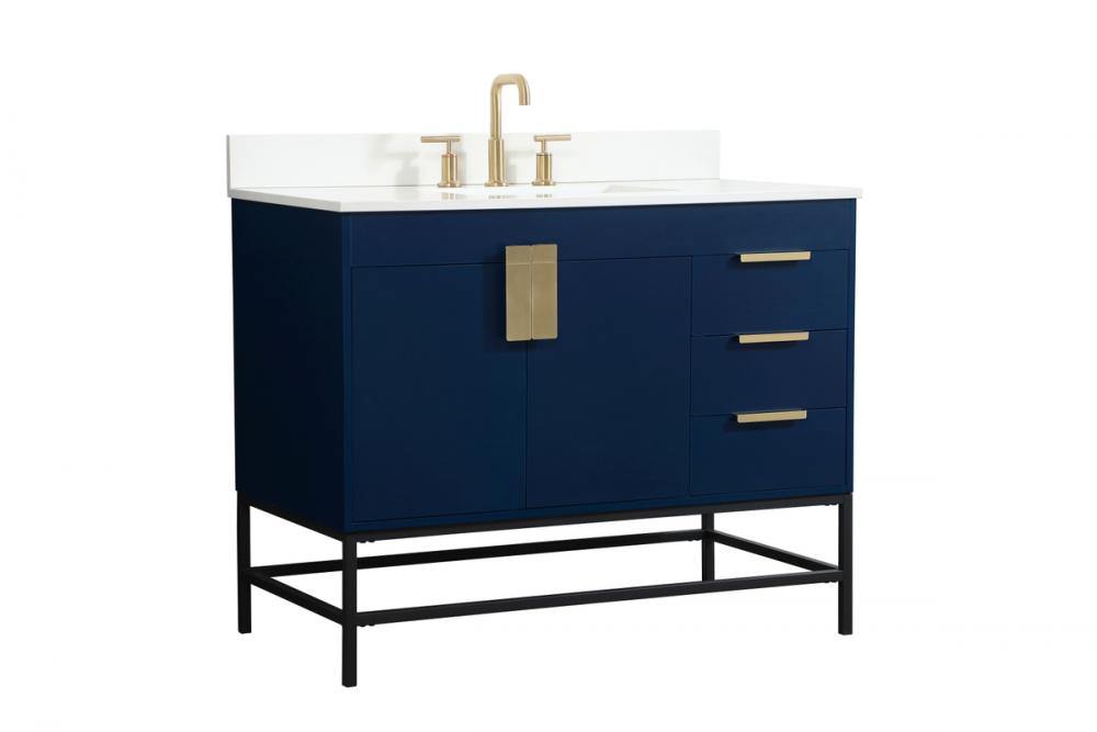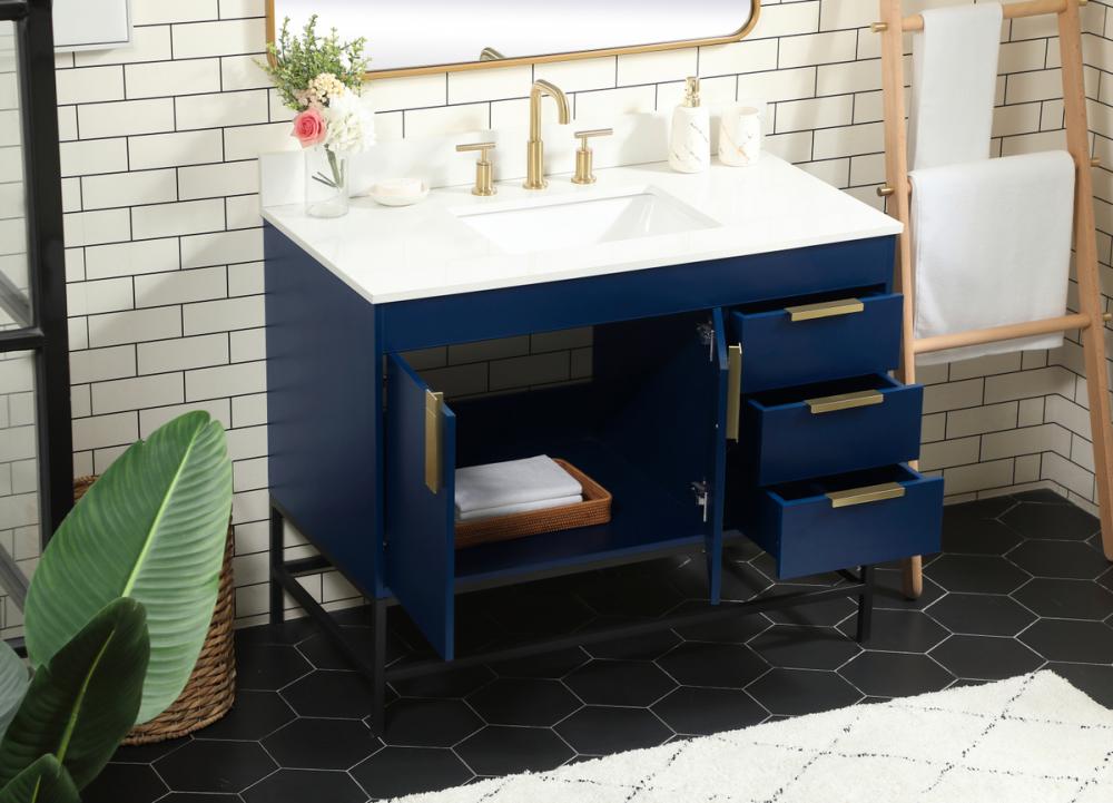 This vanity is a sleek-looking piece of bathroom furniture that is easy to incorporate into your design scheme. The cabinet features a smooth door panel with an oversized steel handle and soft close hinges provide ample room for accessories. Constructed of engineered wood, the powder-coated metal rod legs are an urban industrial look that we love. Minor assembly of the metal legs needed to get this vanity up and running. Comes with a matching backsplash to complete the look and protects your wall.