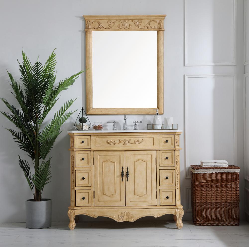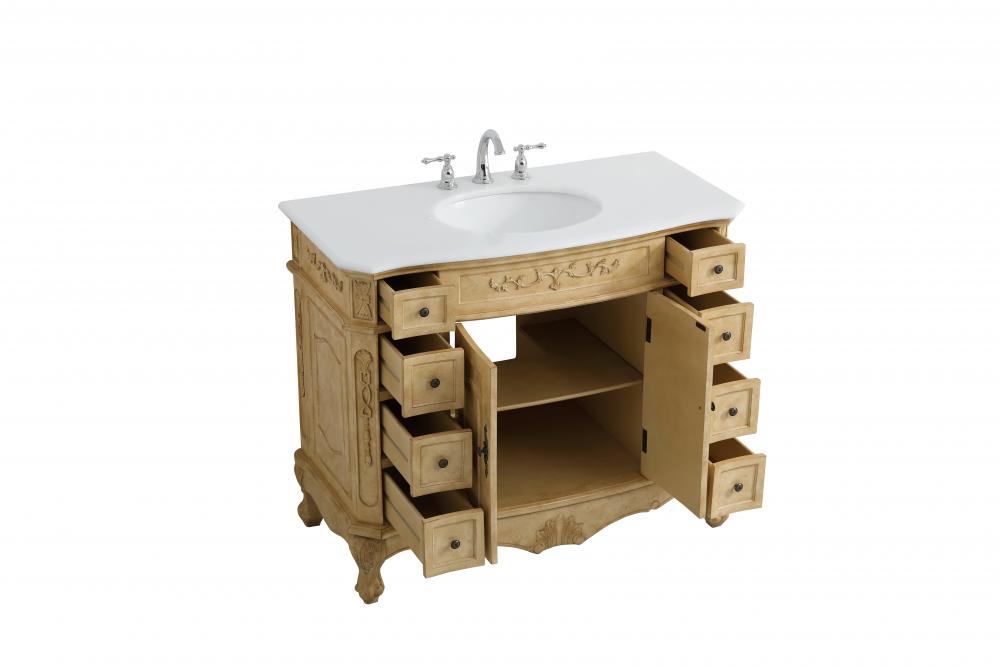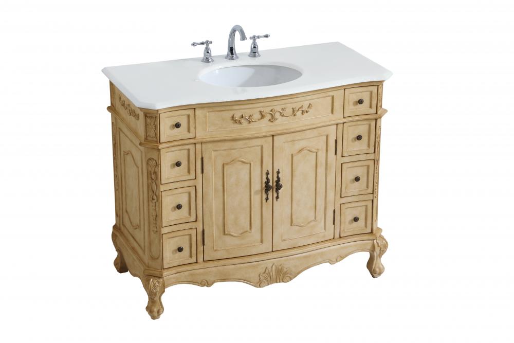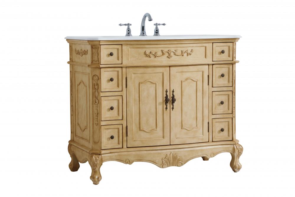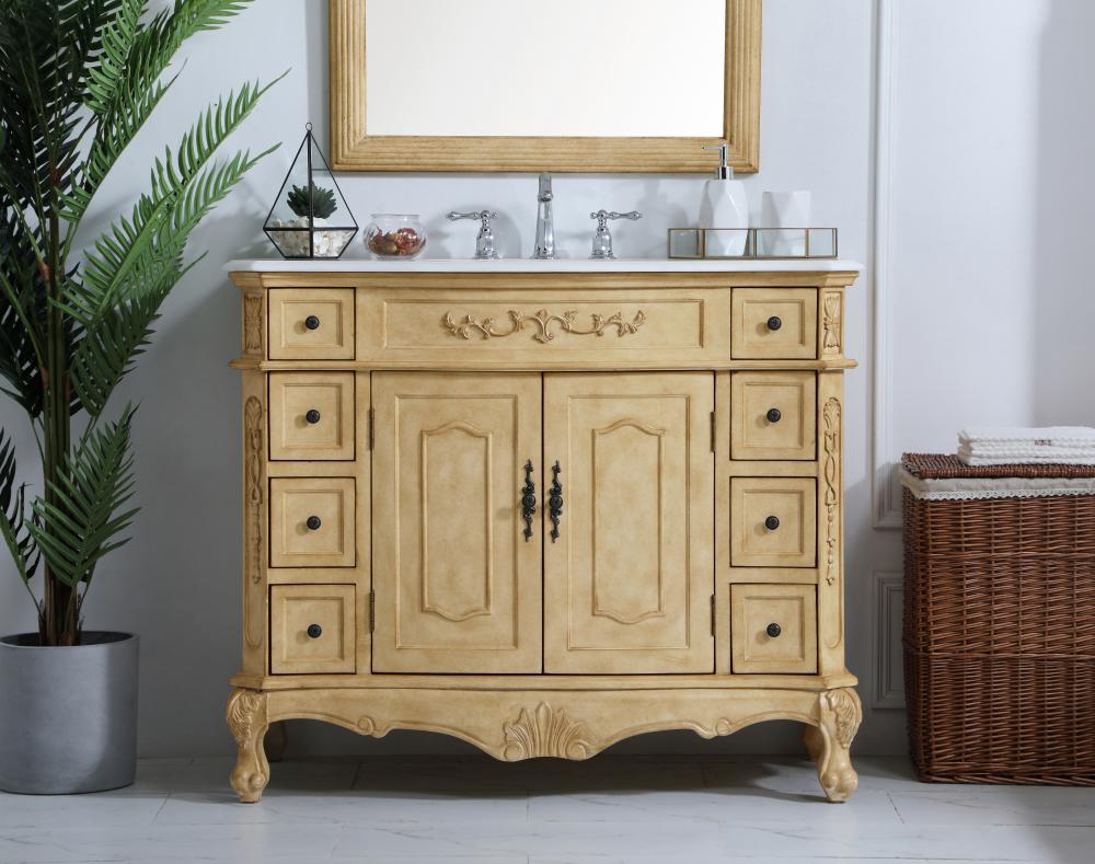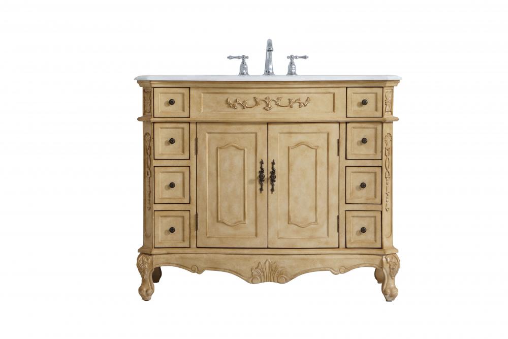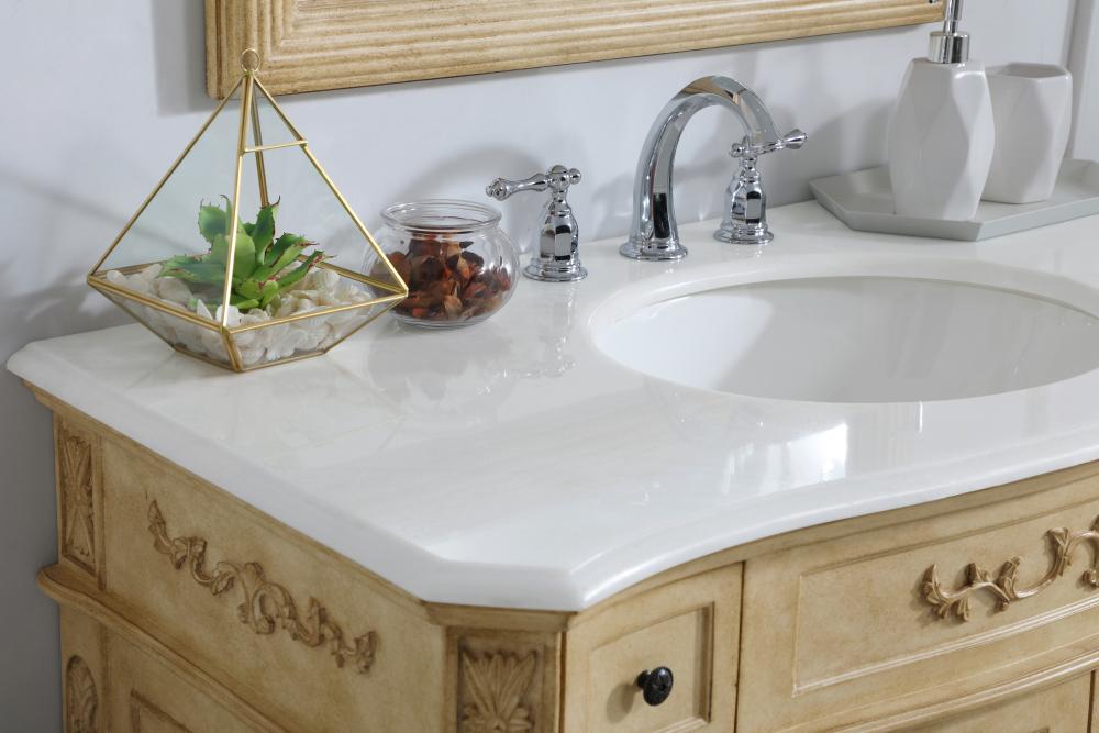 42 inch Single Bathroom vanity in Light Antique Beige with ivory white engineered marble