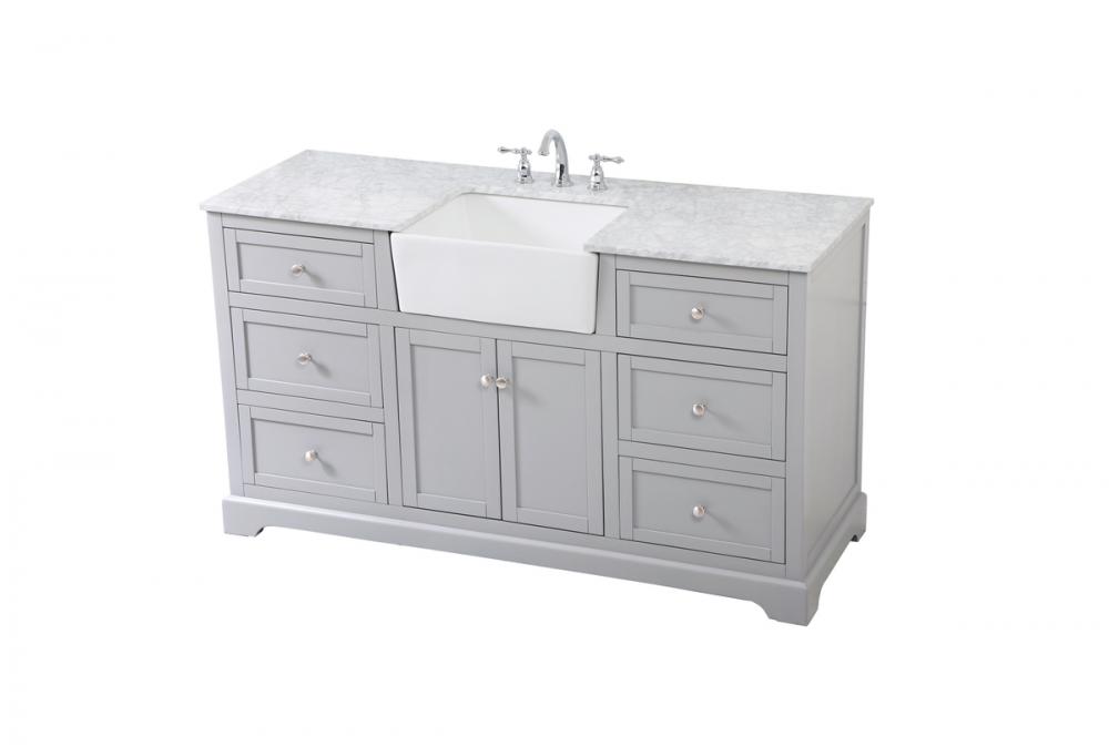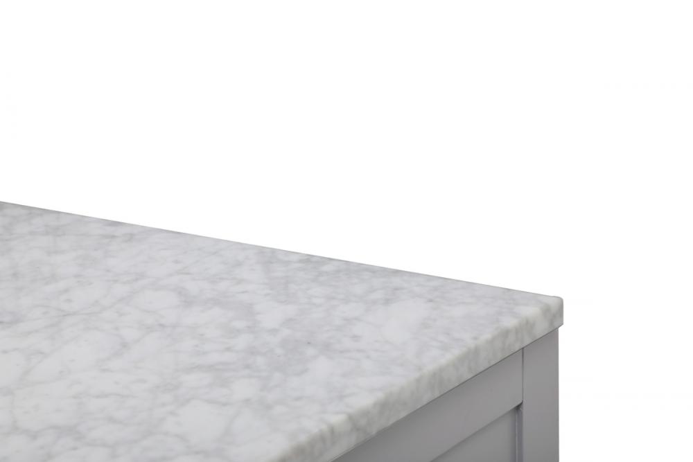 Comes with an apron porcelain sink and durable marble stone top in carrara white finish
