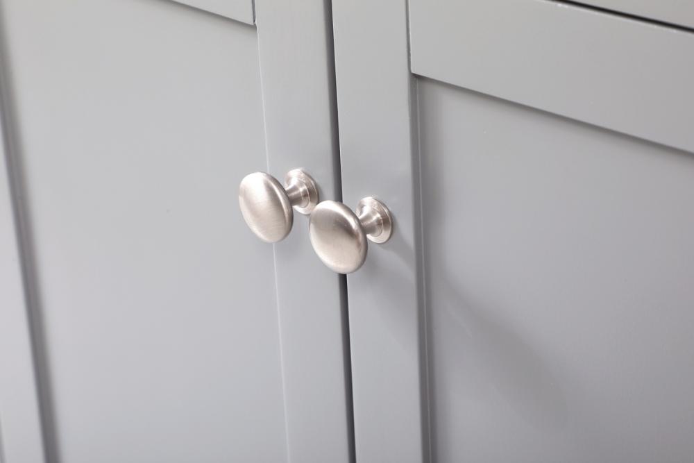 Make the most of your space with this farmhouse style bathroom vanity. Complements well with its beautiful finish, carrara white marble countertop, and the contemporary slender handle bar that sits on the functional drawers with soft closing mechanism, allowing you to store an assortment of bathroom essentials. The lower shelf makes it the perfect space to hold new towels for your guests. This stylish vanity ensures both form and function in your bathroom for you and your guests.