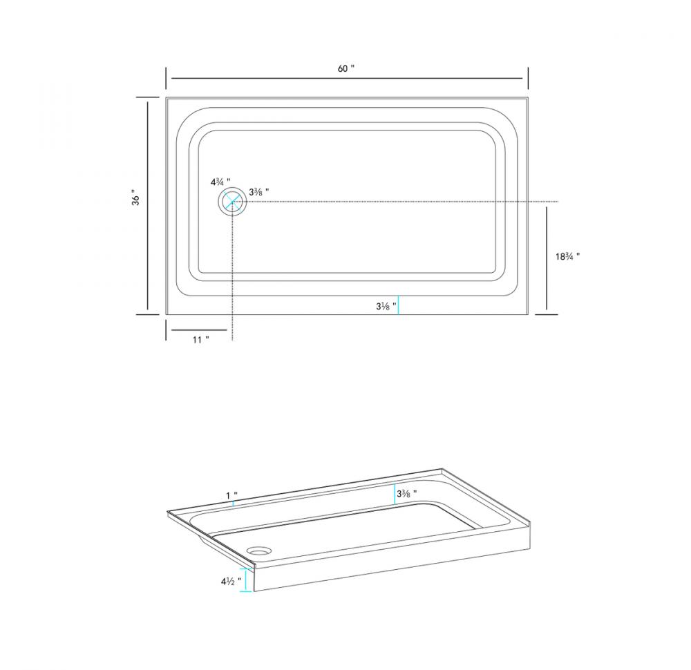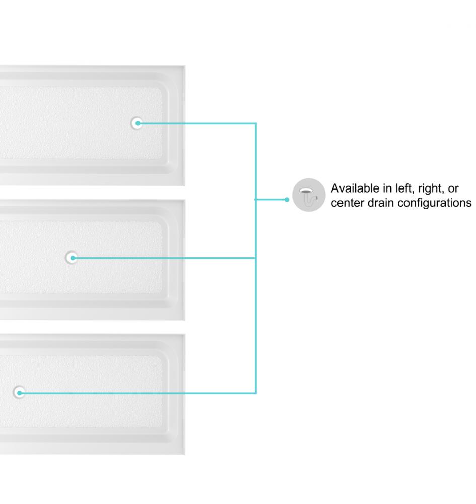 The clean and modern rectangular shape of our shower base complements any bathroom décor, adding a touch of elegance to your space. with three drain location configurations ( left, right, and center) to choose from, this makes a perfect choice!