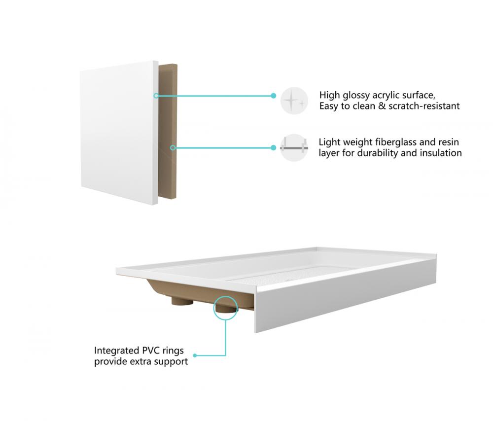Crafted from high-quality acrylic, our shower base is built to last, ensuring long-term durability and a luxurious look in your bathroom.