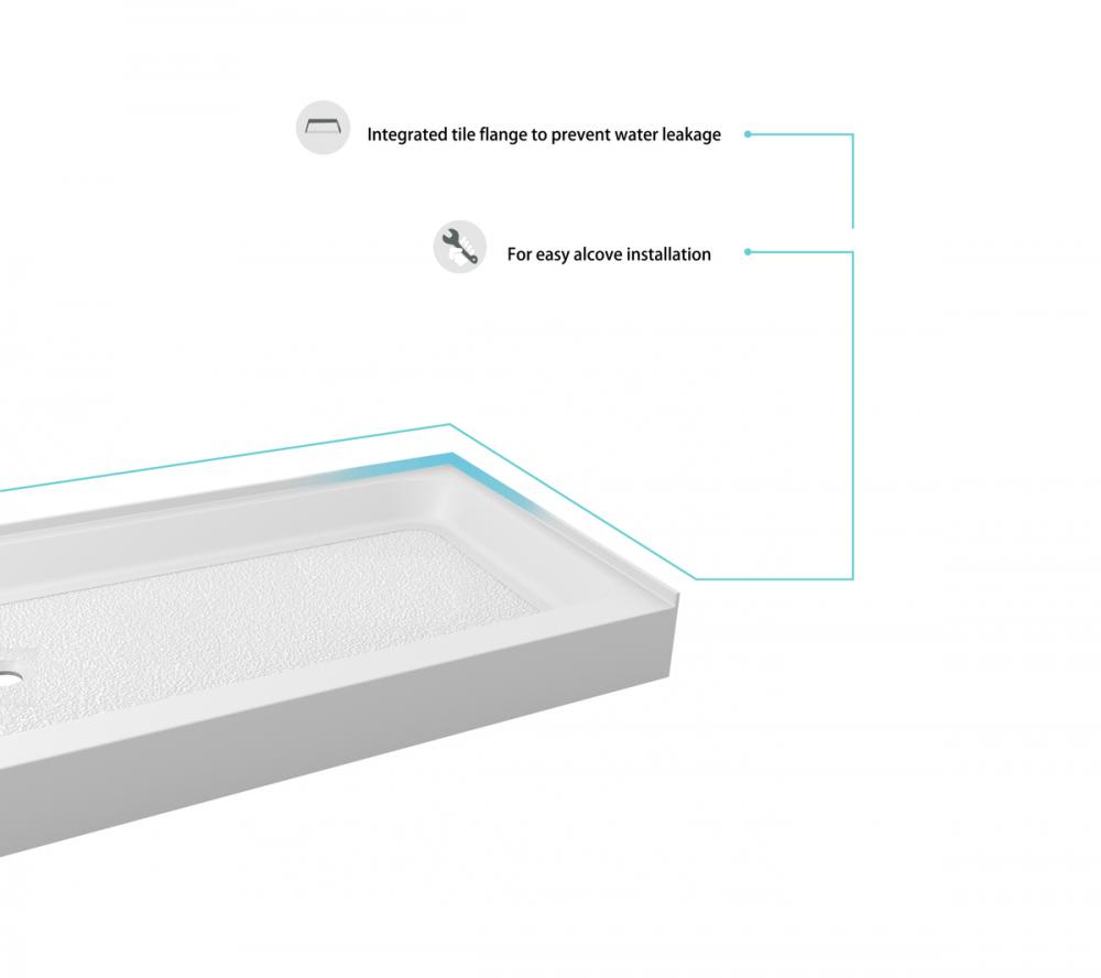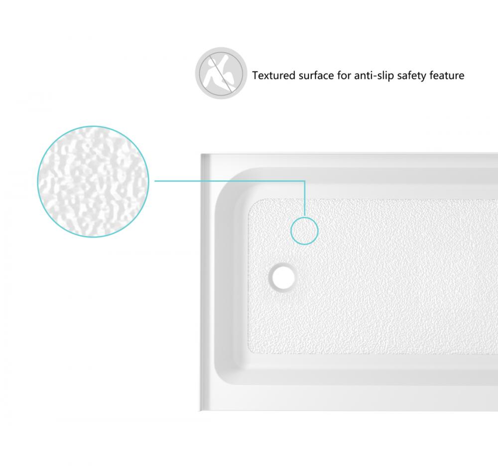 Upgrade your bathroom with our acrylic single threshold alcove shower base in glossy white and enjoy the perfect blend of style, safety, and quality for years to come! This rectangular masterpiece not only adds a touch of contemporary luxury to your space but also ensures top-notch safety and durability. Available in multiple sizes and three drain configurations (left, right, and center).
