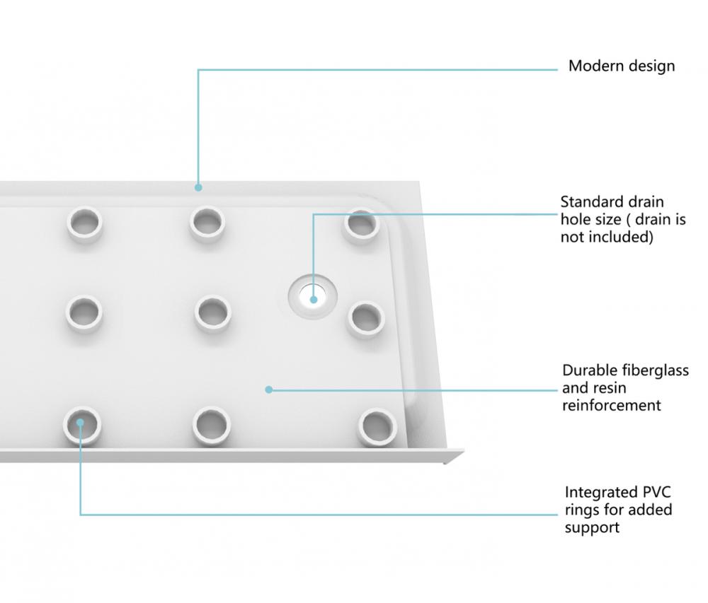 With a floor slope of 1%-2.5%, our shower base ensures efficient water drainage, preventing puddles and maintaining a clean and dry shower environment.