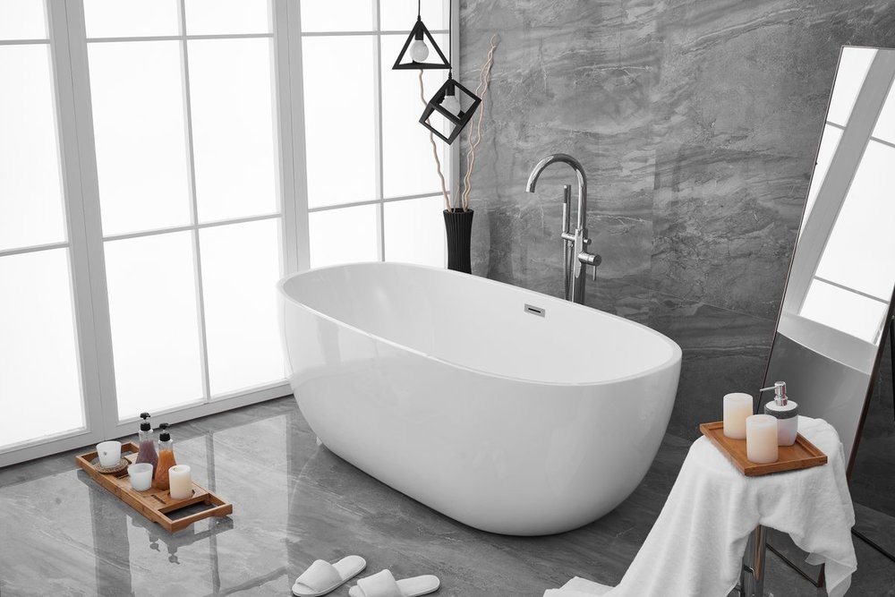 Elegant BT10759GW - 59 inch soaking roll top bathtub in glossy white