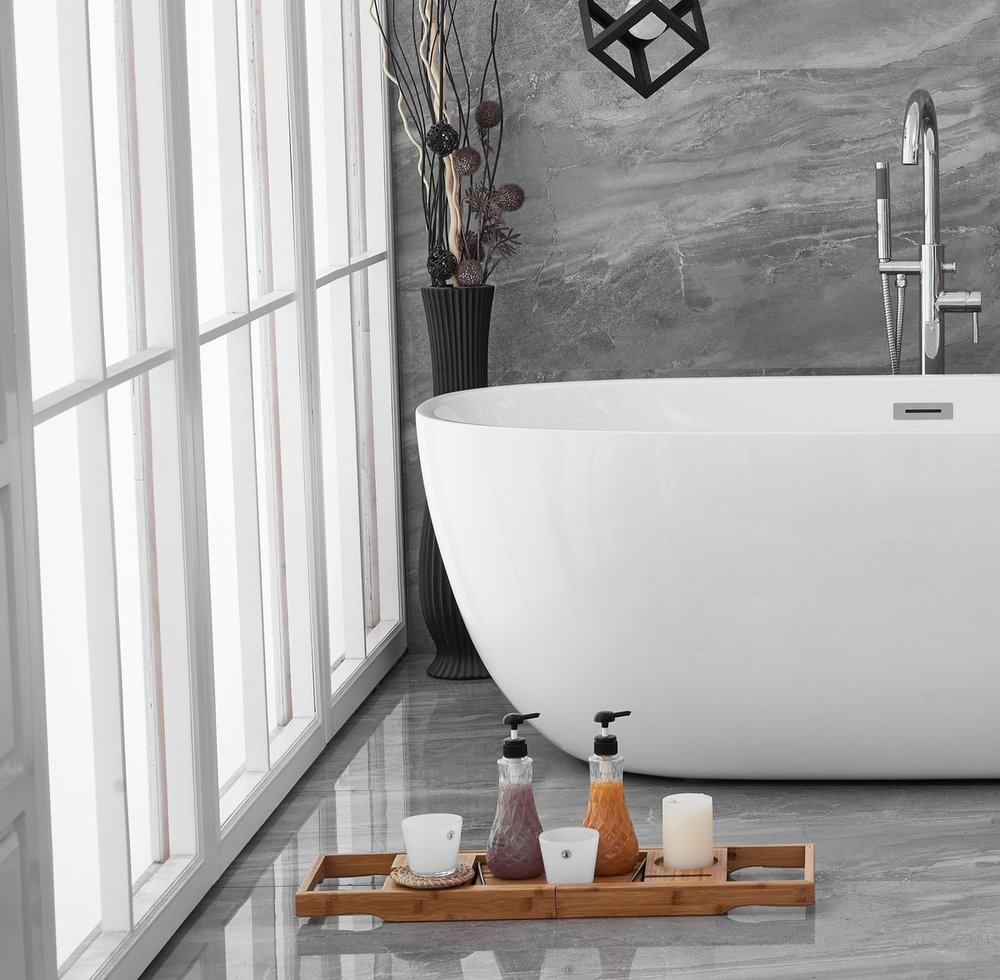 The curvature of this 70" roll top style bath tub allows for comfortable seating--and wouldn't you want to be as comfortable as possible while having a relaxing soak? The glossy white finish adds peaceful modernity to any bathroom--discard all your worries and bathe in elegance.