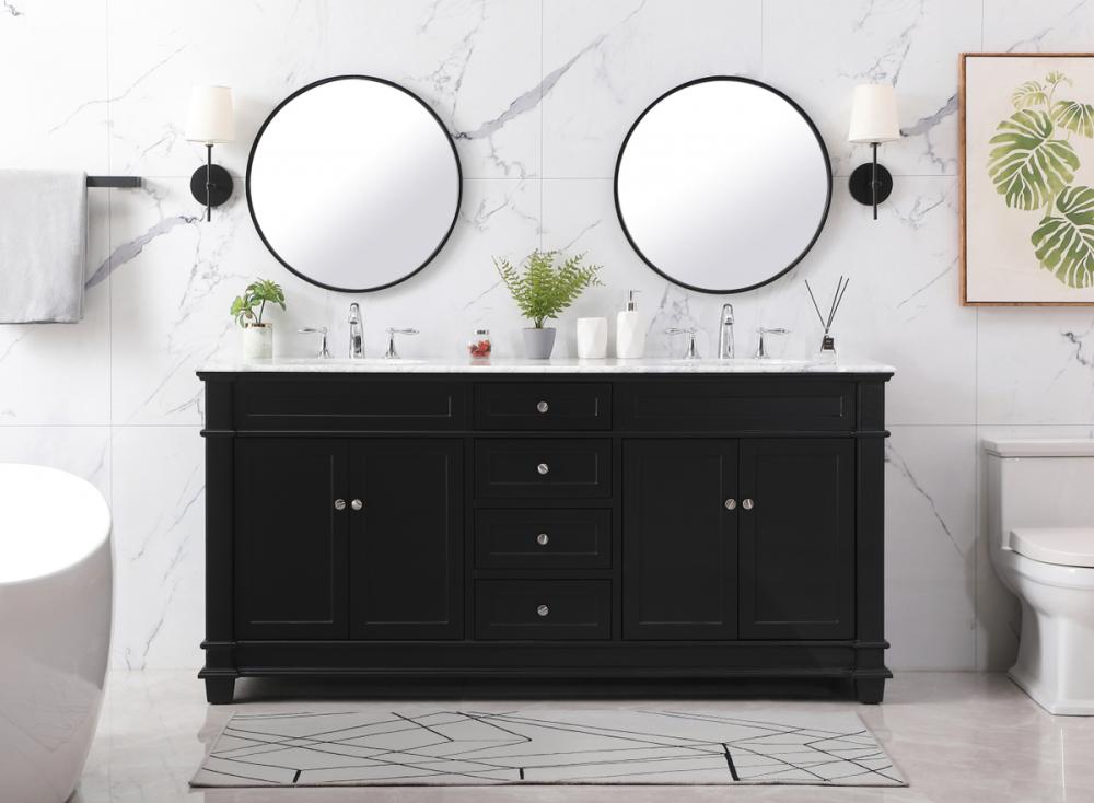 The Wesley Collection vanity cabinet will bring a settle pop of color into your bathroom. The flattering finish is a sophisticated color which creates a calming atmosphere in the room. The brushed nickel knobs bring a vibrant touch to balance the vanity. With the detailed engravings, the cabinet catches eyes with its beautiful lining work. Open the cabinet doors to store what you desire and make use of the spacious area. To top it off, the Carrara white marble adds a luxury and modern finish to the countertop.