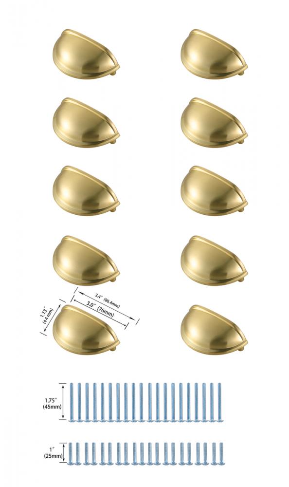 The classic cup pulls are a perfect upgrade to any kitchen, bathroom, or furniture. They are easy to install and provides a beautiful accent to your furniture. Each of the hardware conveniently comes with two sets of mounting screws to save your time and trip to the hardware store. The ten pack hardware is packaged individually to protect scratches of your timeless investment during shipping.