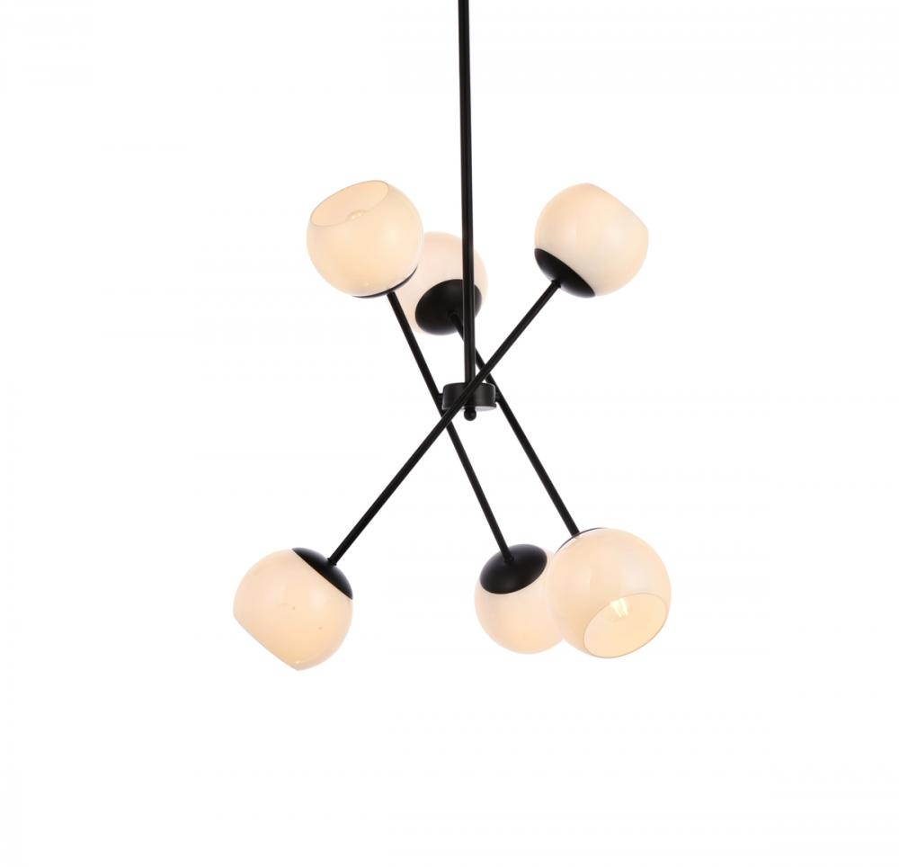 The multi-directional lines on this 6-light sputnik chandelier bring an architectural look over the dining room table or kitchen island. It has a circular canopy and an adjustable downrod to suit any space. The sleek, sputnik-inspired lines zigzagging in all directions freshen up any modern home. At the end of each rod, there is one glass shade with one candelabra-style bulb up to 60W (not included) that aims ambient light wherever you hang it. Best of all, this hardwired chandelier is compatible with a dimmer switch, allowing you to change up the lighting throughout the day.