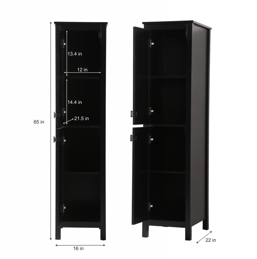 Measuring 16" W x 65" H x 22" D, our linen storage cabinet is compact enough to fit into various spaces while offering substantial storage capacity.