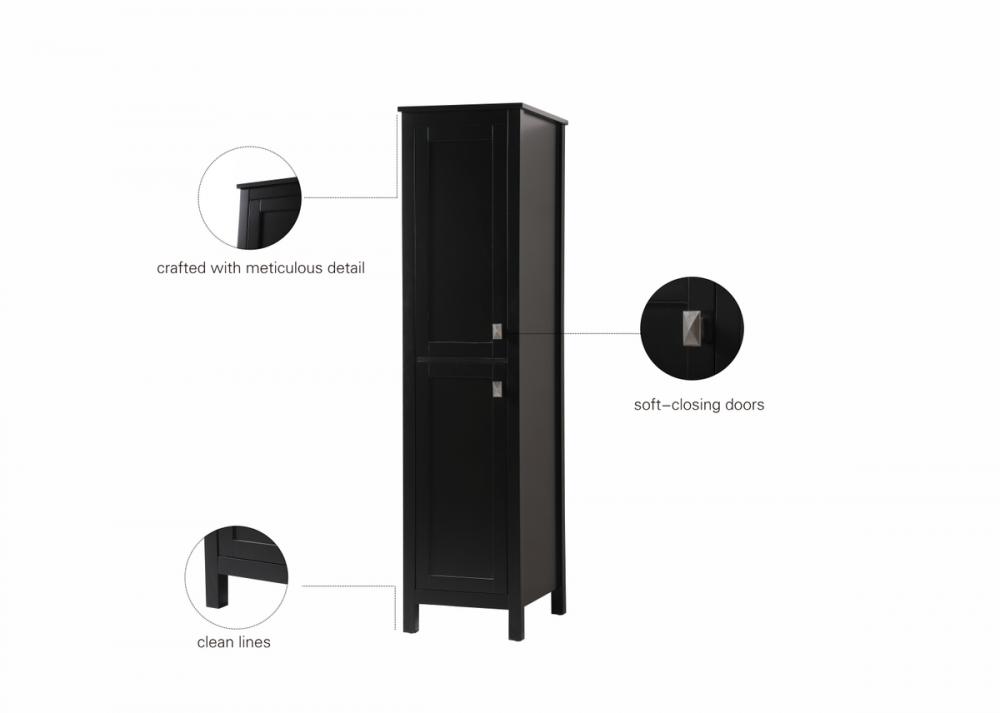 Discover enhanced storage possibilities with our linen storage cabinet, a perfect blend of compact design and ample space, measuring 16" W x 65" H x 22" D. Crafted from durable engineered wood, this cabinet features a sophisticated design including upper and lower doors, crown molding, shaker legs, and zinc hardware, exuding timeless elegance. The top and bottom cabinets equipped with adjustable shelves provide substantial room for toiletries, towels, and more. Experience versatility, convenience, and tranquility with soft-close doors and two adjustable shelves. Arriving fully assembled, it streamlines setup, while various finishes and sizes seamlessly integrate with our bathroom vanity collection.